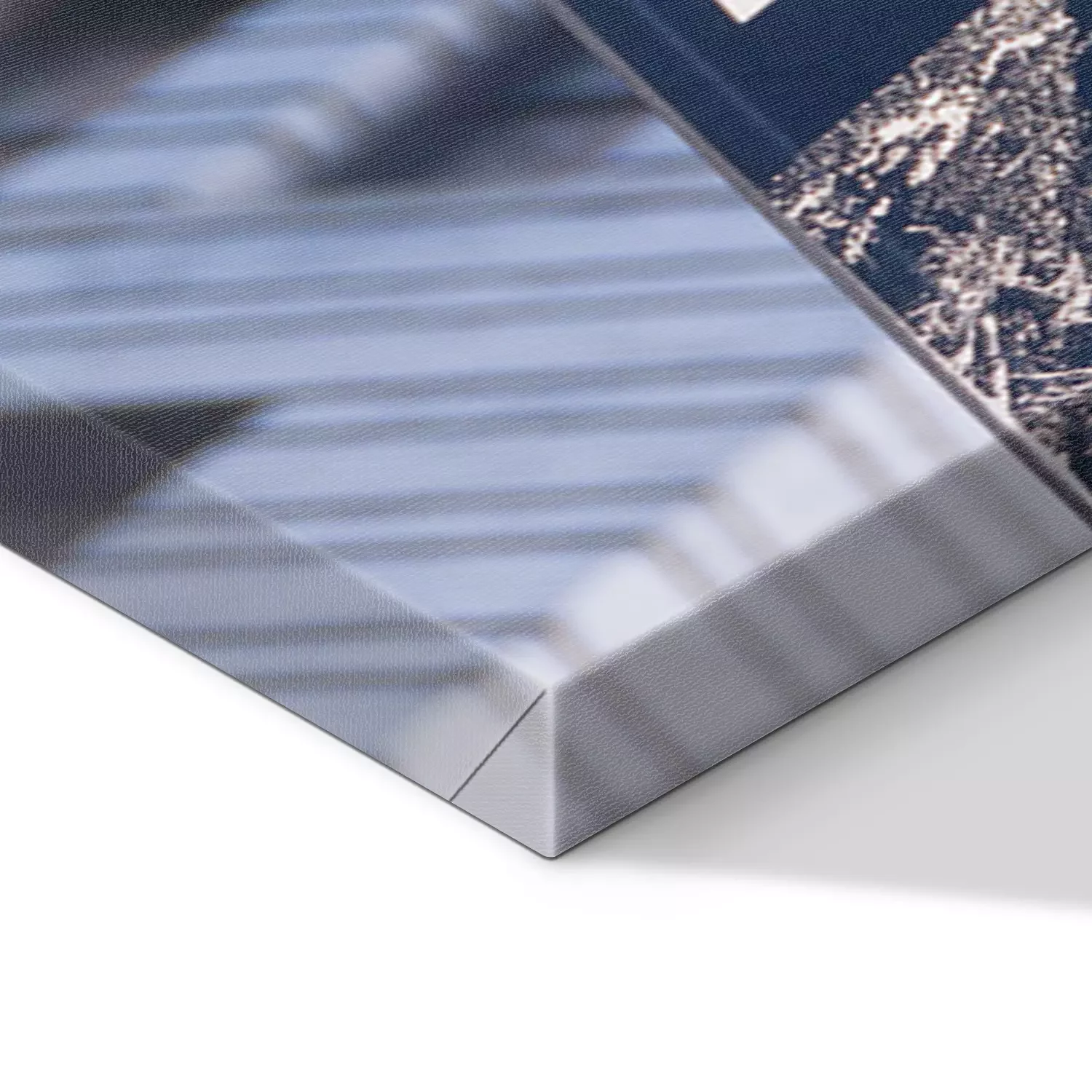 De print wordt aangebracht op hoogwaardig canvas dat op een schildersweefgetouw (spieraam) wordt gespannen. Omdat de print de zijranden bedekt, hoeft het ontwerp niet met een extra kader te worden omlijst. Wij raden ook composities aan die uit meerdere foto's bestaan en zo een coherente compositie vormen.
