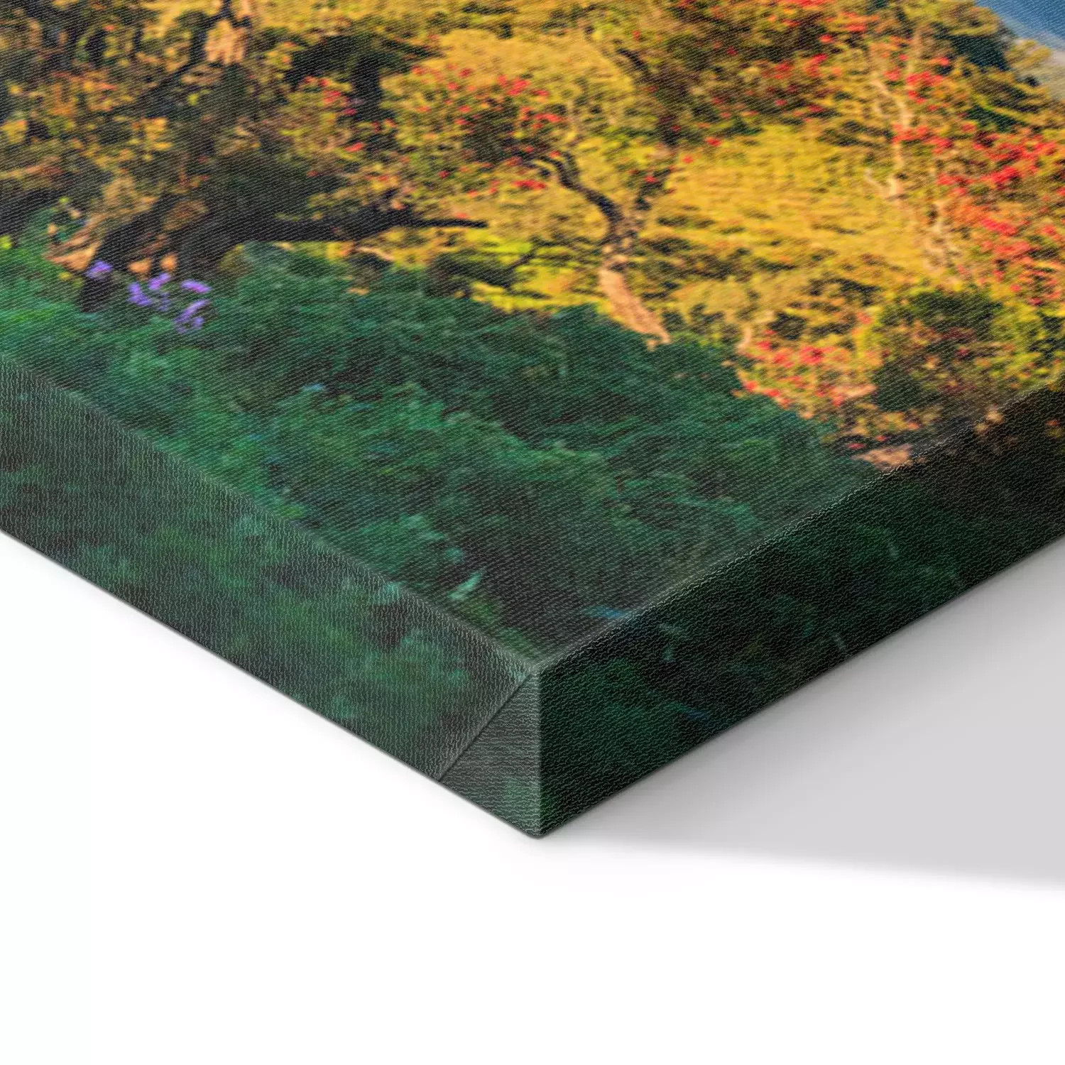 De print wordt aangebracht op hoogwaardig canvas dat op een schildersweefgetouw (spieraam) wordt gespannen. Omdat de print de zijranden bedekt, hoeft het ontwerp niet met een extra kader te worden omlijst. Wij raden ook composities aan die uit meerdere foto's bestaan en zo een coherente compositie vormen.