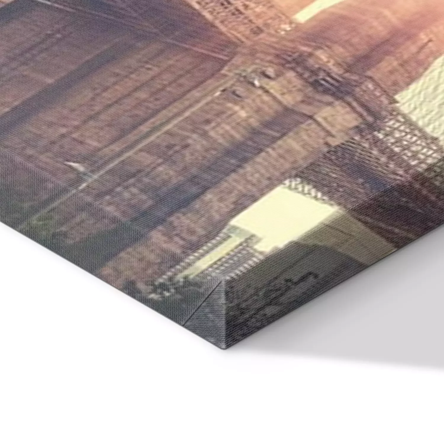 De print wordt aangebracht op hoogwaardig canvas dat op een schildersweefgetouw (spieraam) wordt gespannen. Omdat de print de zijranden bedekt, hoeft het ontwerp niet met een extra kader te worden omlijst. Wij raden ook composities aan die uit meerdere foto's bestaan en zo een coherente compositie vormen.