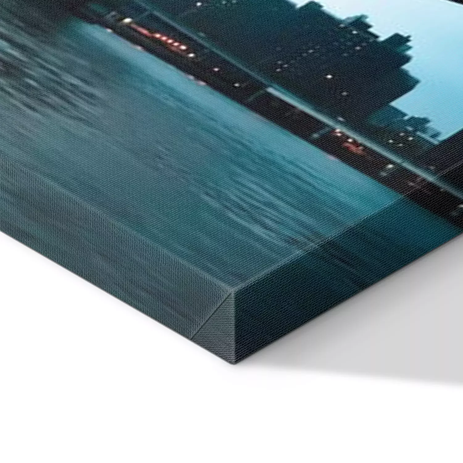 De print wordt aangebracht op hoogwaardig canvas dat op een schildersweefgetouw (spieraam) wordt gespannen. Omdat de print de zijranden bedekt, hoeft het ontwerp niet met een extra kader te worden omlijst. Wij raden ook composities aan die uit meerdere foto's bestaan en zo een coherente compositie vormen.