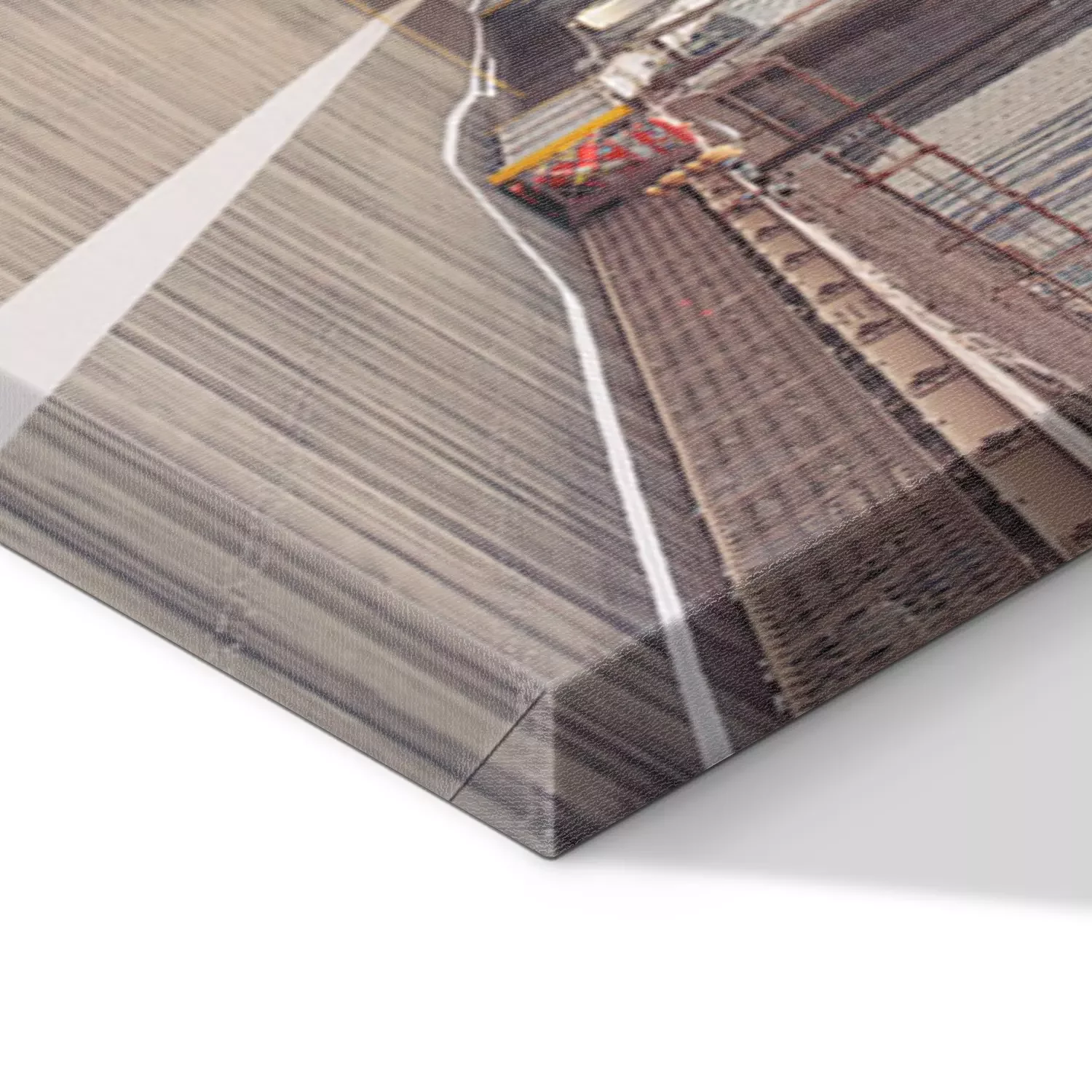 De print wordt aangebracht op hoogwaardig canvas dat op een schildersweefgetouw (spieraam) wordt gespannen. Omdat de print de zijranden bedekt, hoeft het ontwerp niet met een extra kader te worden omlijst. Wij raden ook composities aan die uit meerdere foto's bestaan en zo een coherente compositie vormen.