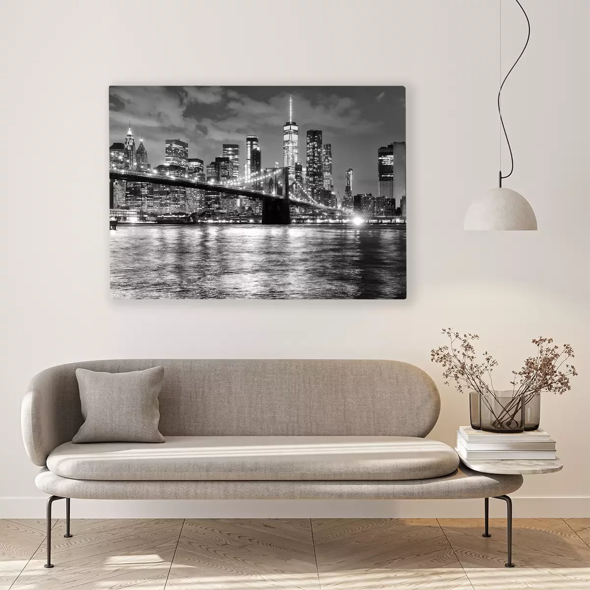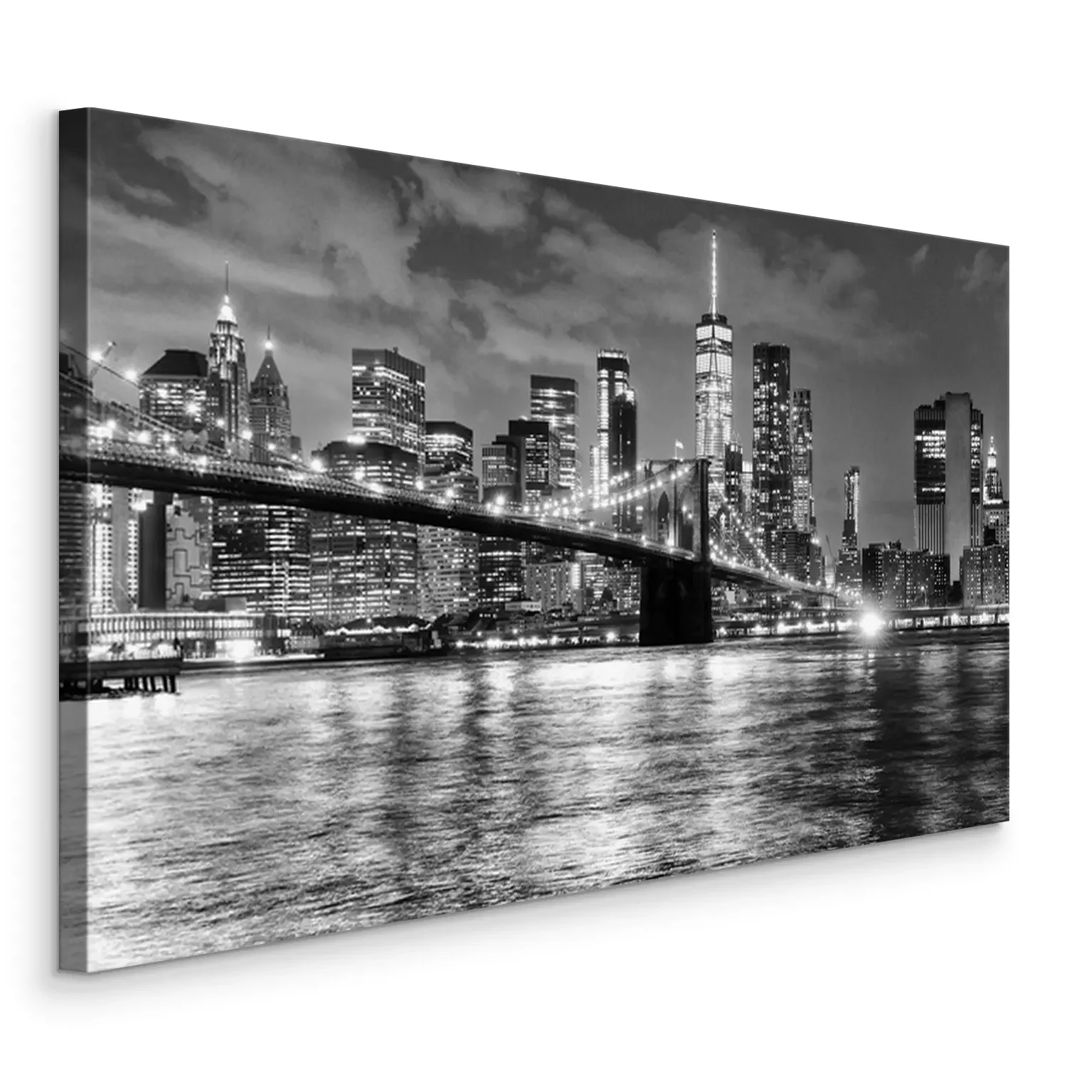 Canvas: Brooklyn Bridge in New York zwart wit landschap