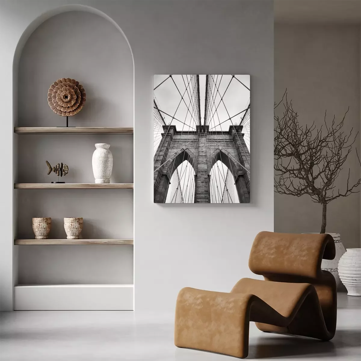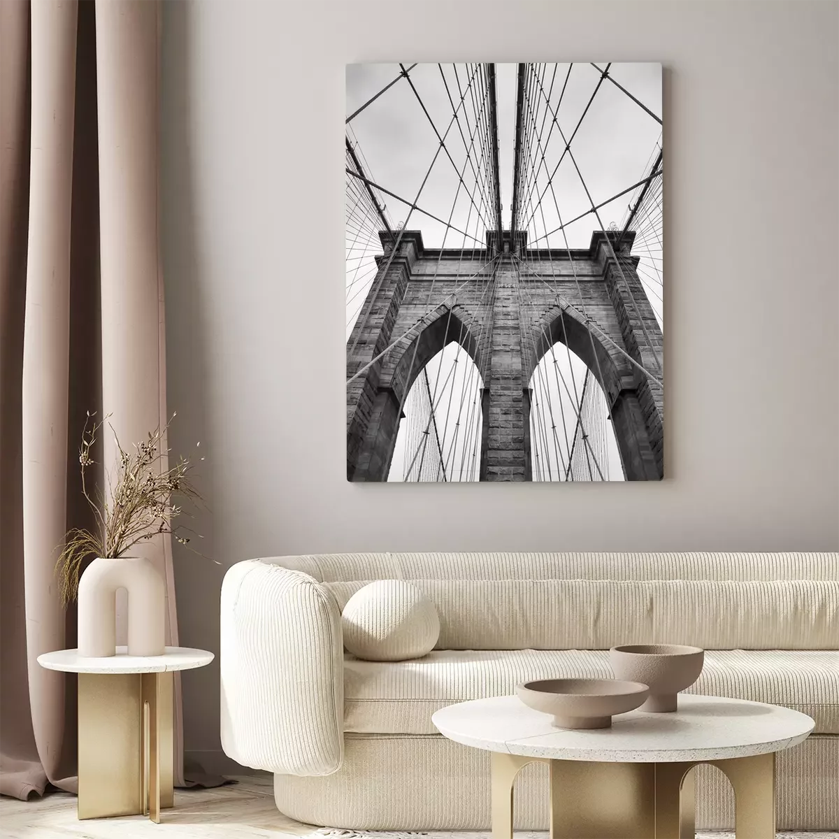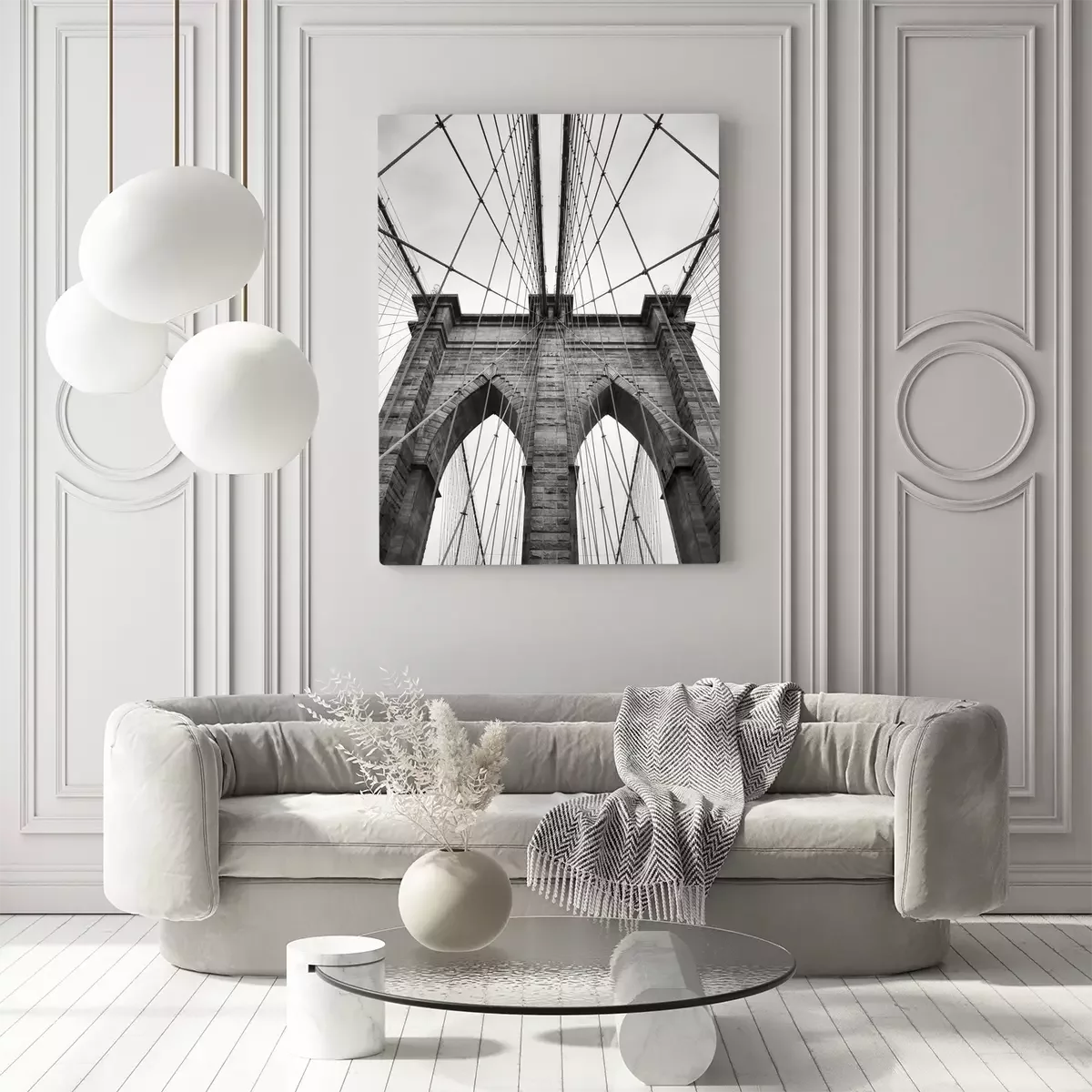 Canvas Brooklyn Bridge New York City close up architectural detail in timeless black and white