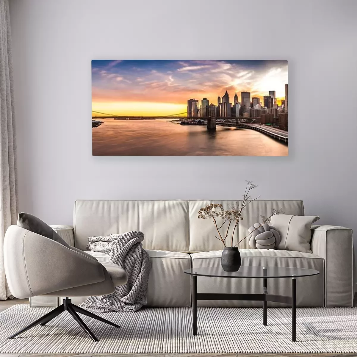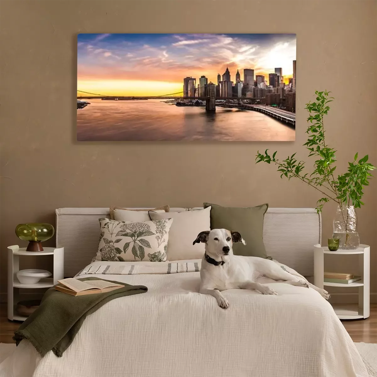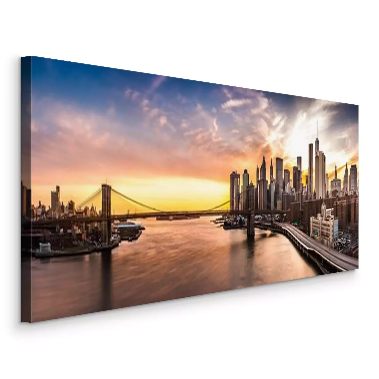 Canvas: Brooklyn Bridge panorama bij zonsondergang