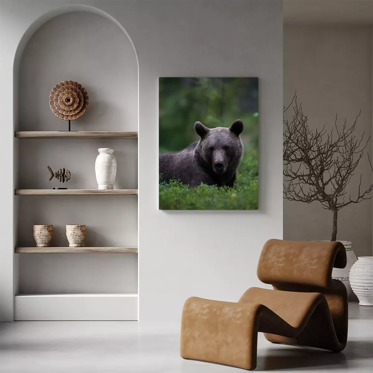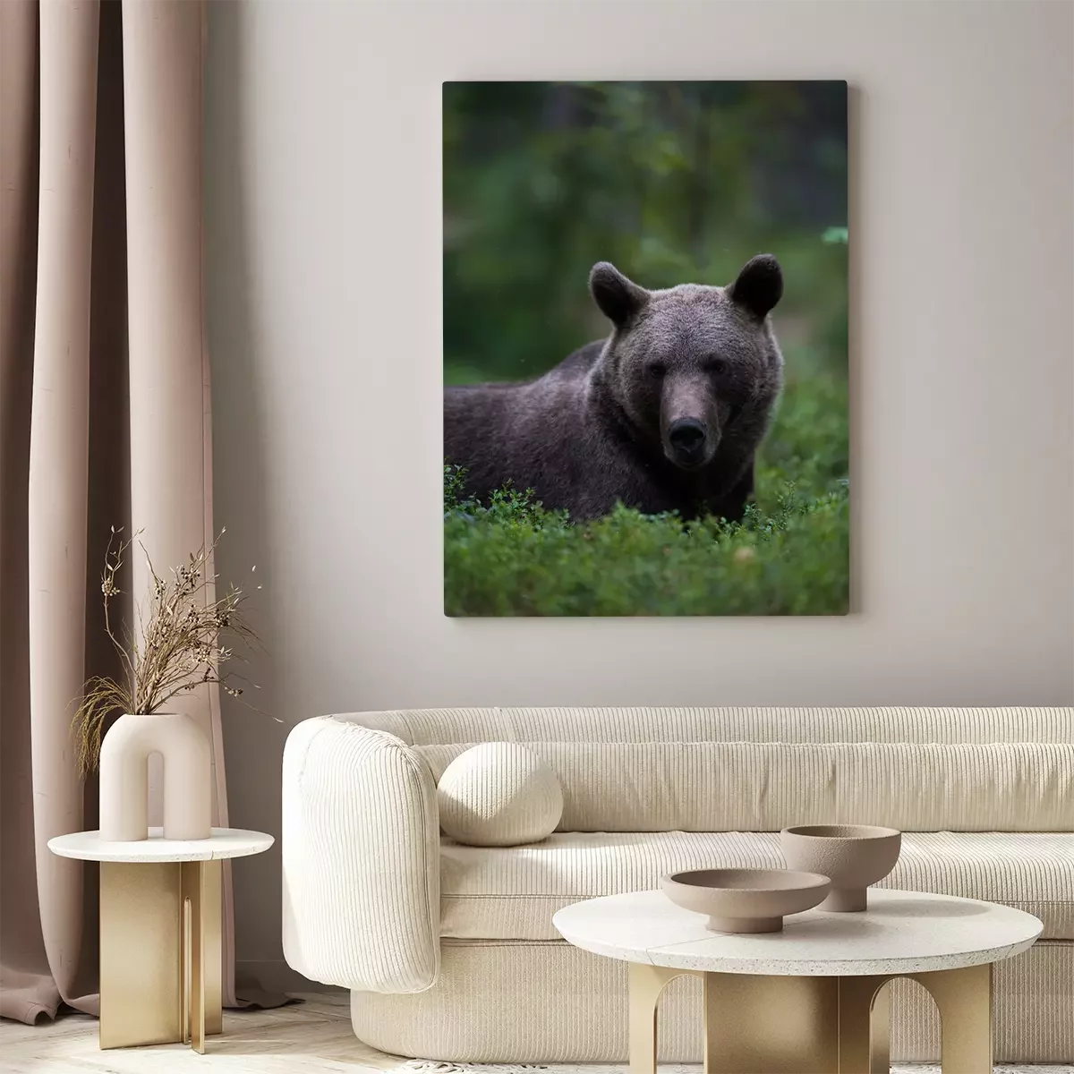 Canvas Brown bear relaxing in a forest