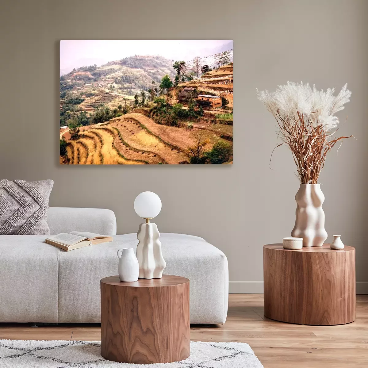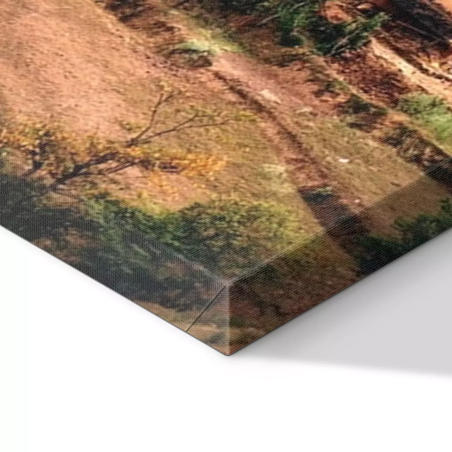 De print wordt aangebracht op hoogwaardig canvas dat op een schildersweefgetouw (spieraam) wordt gespannen. Omdat de print de zijranden bedekt, hoeft het ontwerp niet met een extra kader te worden omlijst. Wij raden ook composities aan die uit meerdere foto's bestaan en zo een coherente compositie vormen.