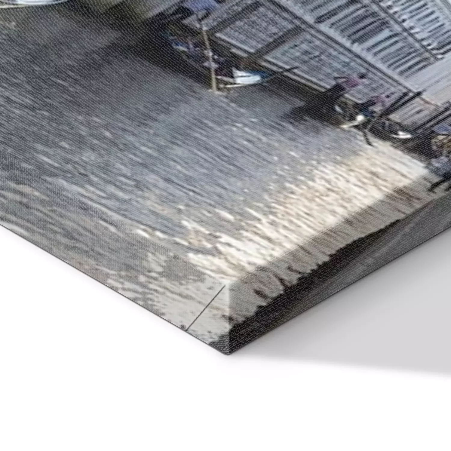 De print wordt aangebracht op hoogwaardig canvas dat op een schildersweefgetouw (spieraam) wordt gespannen. Omdat de print de zijranden bedekt, hoeft het ontwerp niet met een extra kader te worden omlijst. Wij raden ook composities aan die uit meerdere foto's bestaan en zo een coherente compositie vormen.