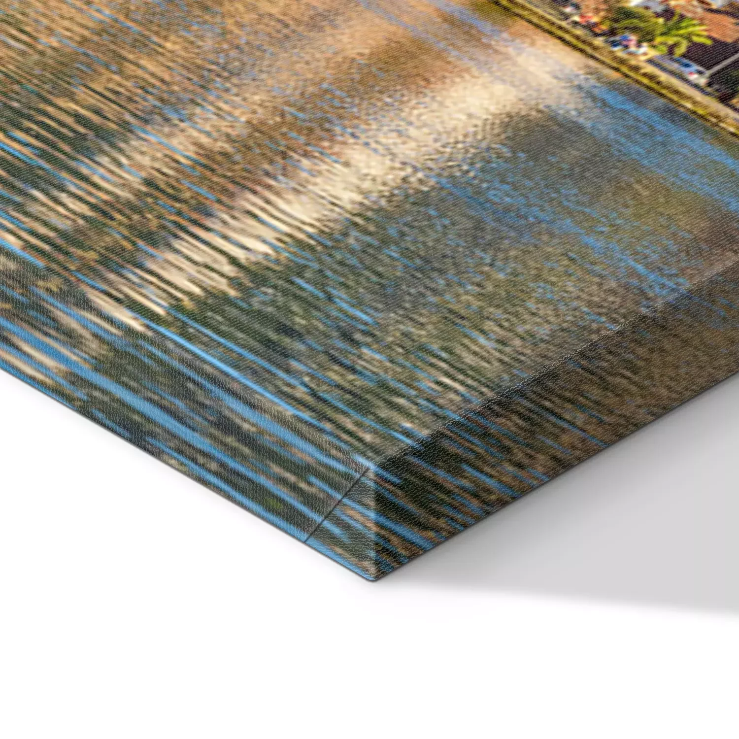De print wordt aangebracht op hoogwaardig canvas dat op een schildersweefgetouw (spieraam) wordt gespannen. Omdat de print de zijranden bedekt, hoeft het ontwerp niet met een extra kader te worden omlijst. Wij raden ook composities aan die uit meerdere foto's bestaan en zo een coherente compositie vormen.