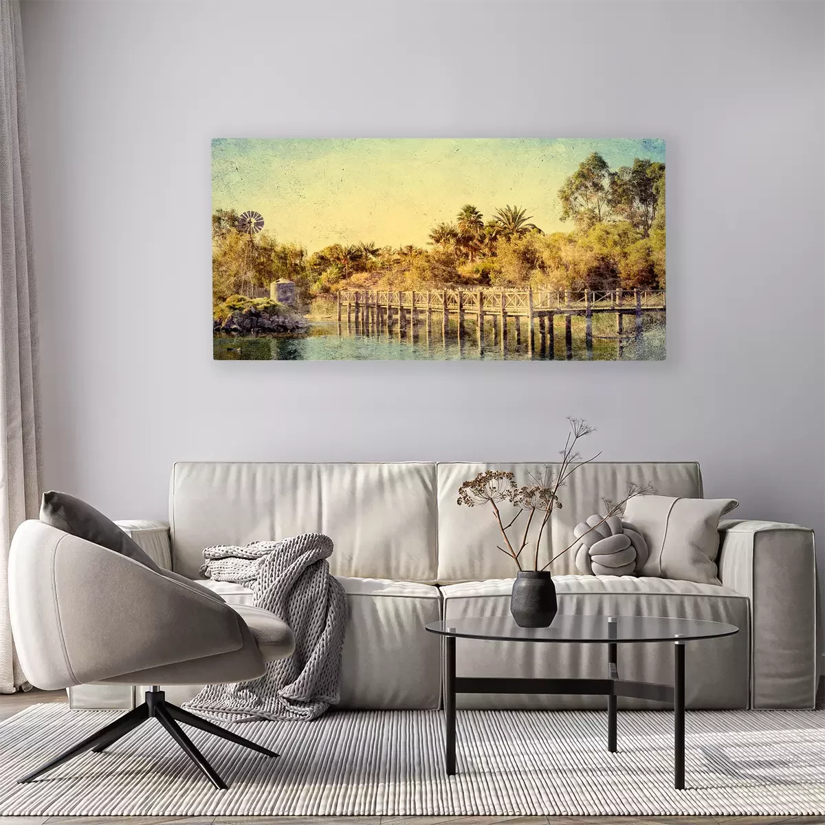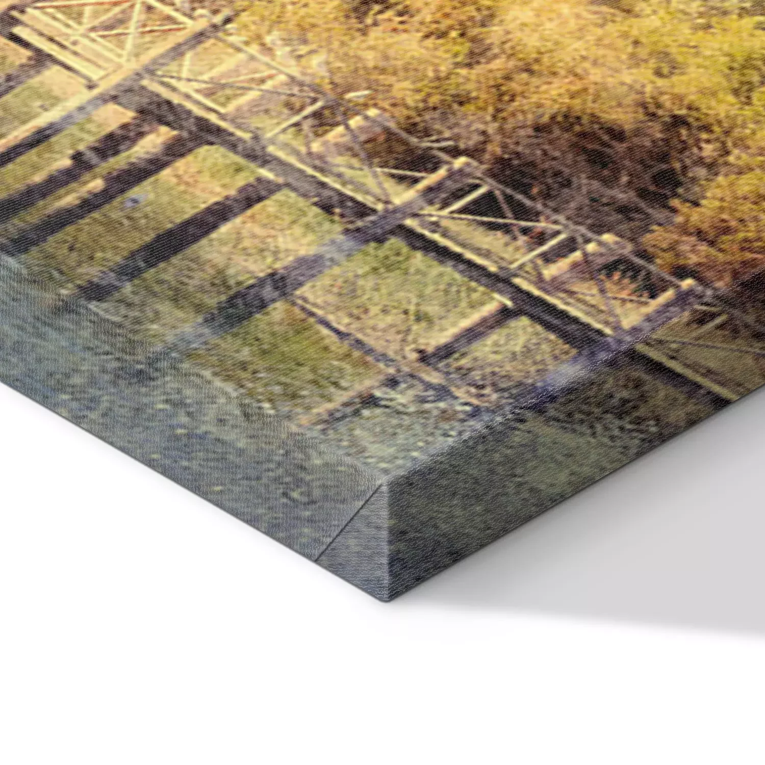 De print wordt aangebracht op hoogwaardig canvas dat op een schildersweefgetouw (spieraam) wordt gespannen. Omdat de print de zijranden bedekt, hoeft het ontwerp niet met een extra kader te worden omlijst. Wij raden ook composities aan die uit meerdere foto's bestaan en zo een coherente compositie vormen.