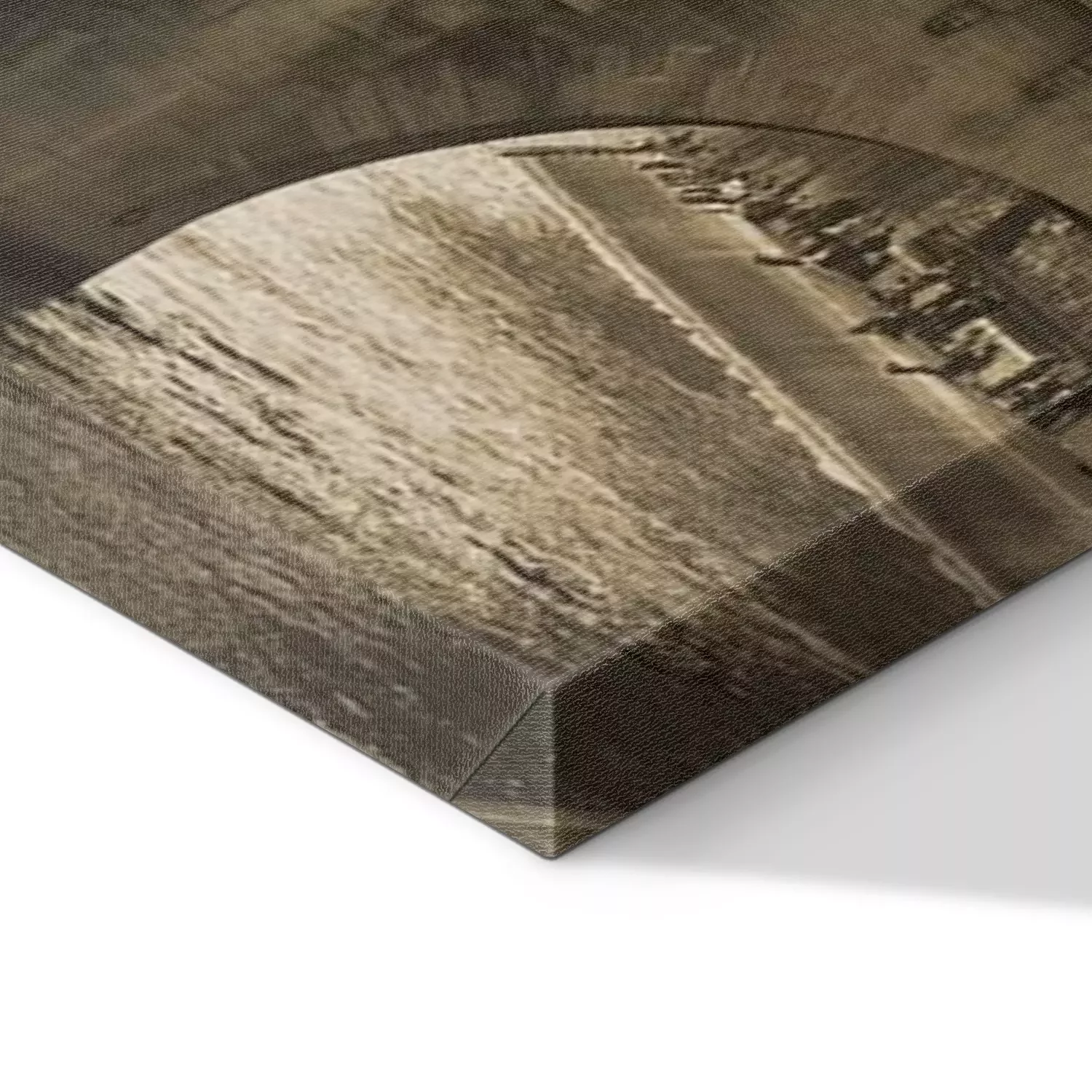 De print wordt aangebracht op hoogwaardig canvas dat op een schildersweefgetouw (spieraam) wordt gespannen. Omdat de print de zijranden bedekt, hoeft het ontwerp niet met een extra kader te worden omlijst. Wij raden ook composities aan die uit meerdere foto's bestaan en zo een coherente compositie vormen.