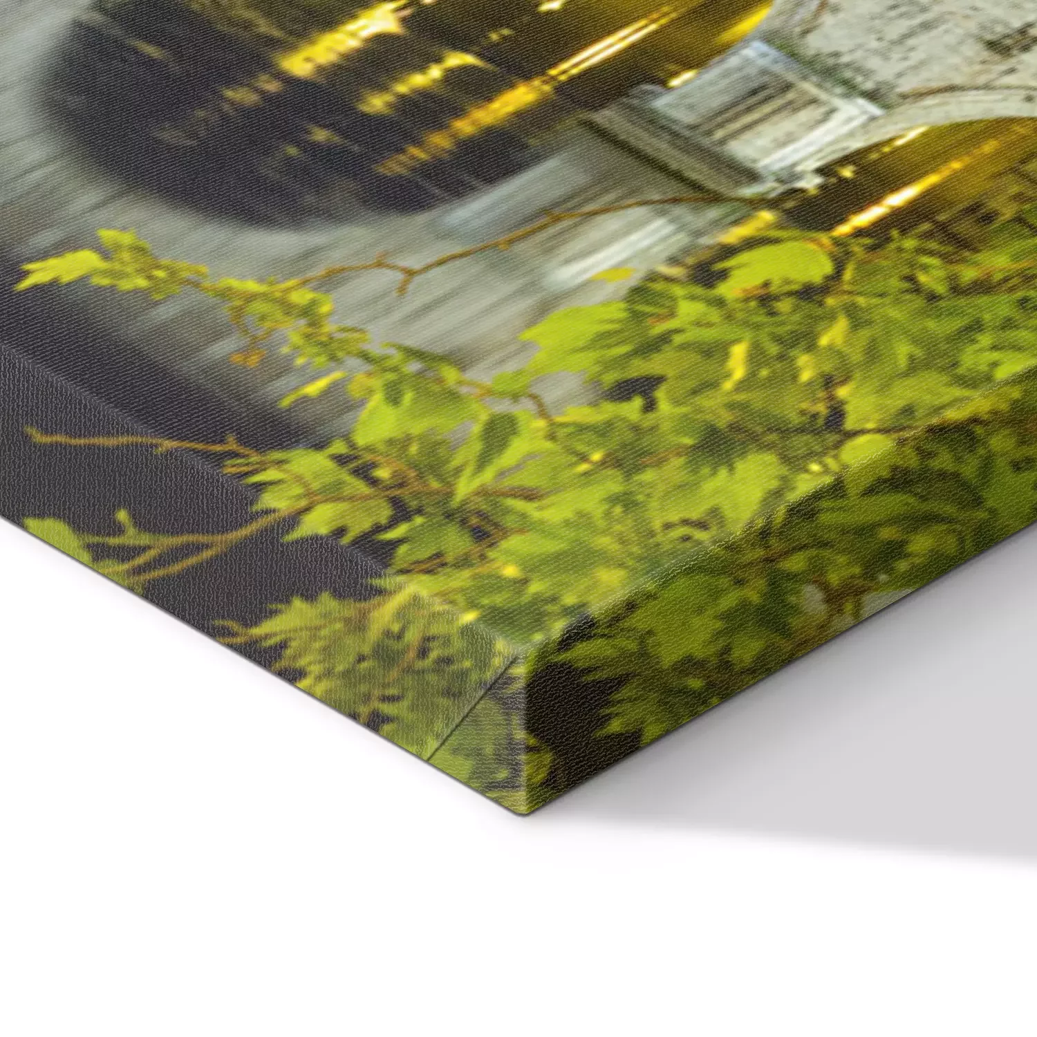 De print wordt aangebracht op hoogwaardig canvas dat op een schildersweefgetouw (spieraam) wordt gespannen. Omdat de print de zijranden bedekt, hoeft het ontwerp niet met een extra kader te worden omlijst. Wij raden ook composities aan die uit meerdere foto's bestaan en zo een coherente compositie vormen.