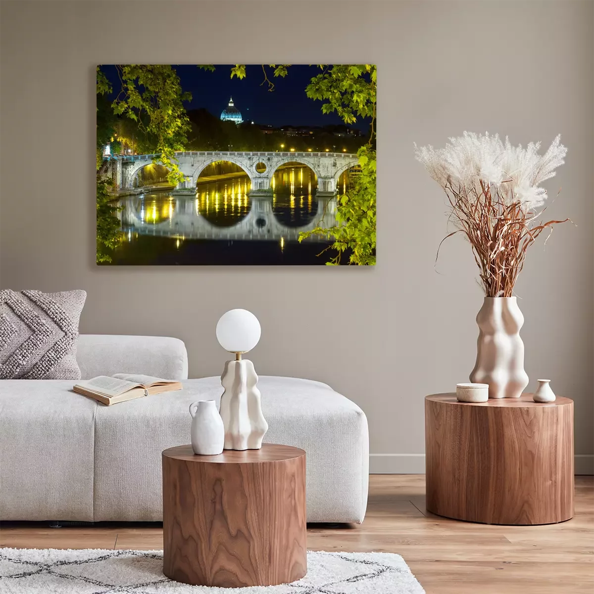 Canvas: Brug 's nachts in Rome