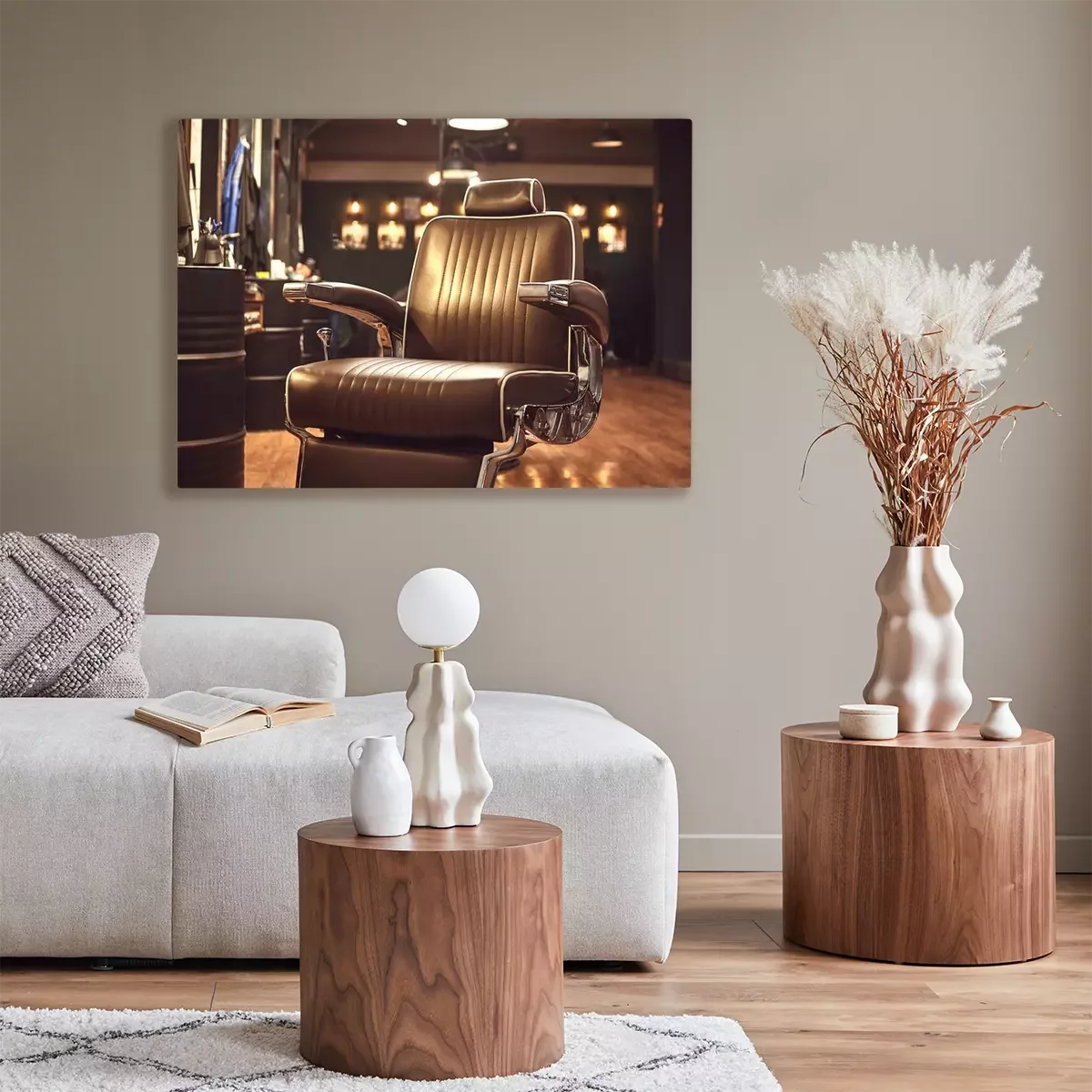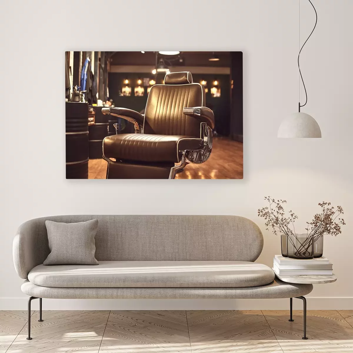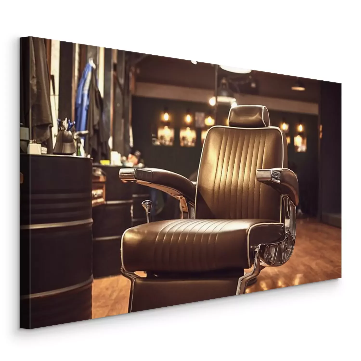 Canvas: Bruin lederen stoel in kapperszaak. Loft stijl