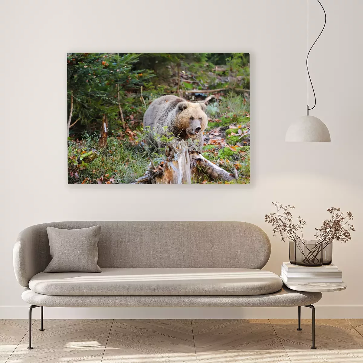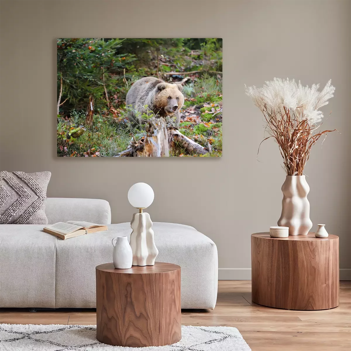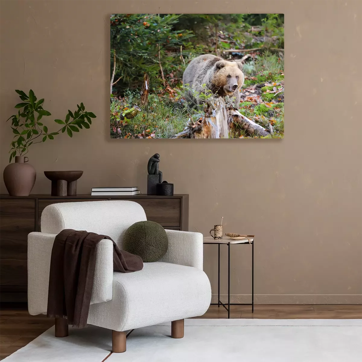Canvas: Bruine beer in het bos