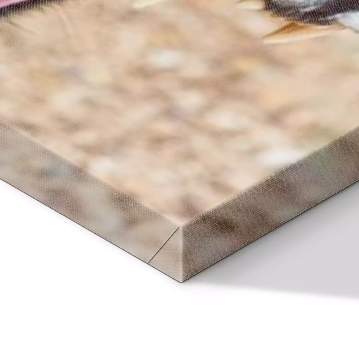 De print wordt aangebracht op hoogwaardig canvas dat op een schildersweefgetouw (spieraam) wordt gespannen. Omdat de print de zijranden bedekt, hoeft het ontwerp niet met een extra kader te worden omlijst. Wij raden ook composities aan die uit meerdere foto's bestaan en zo een coherente compositie vormen.