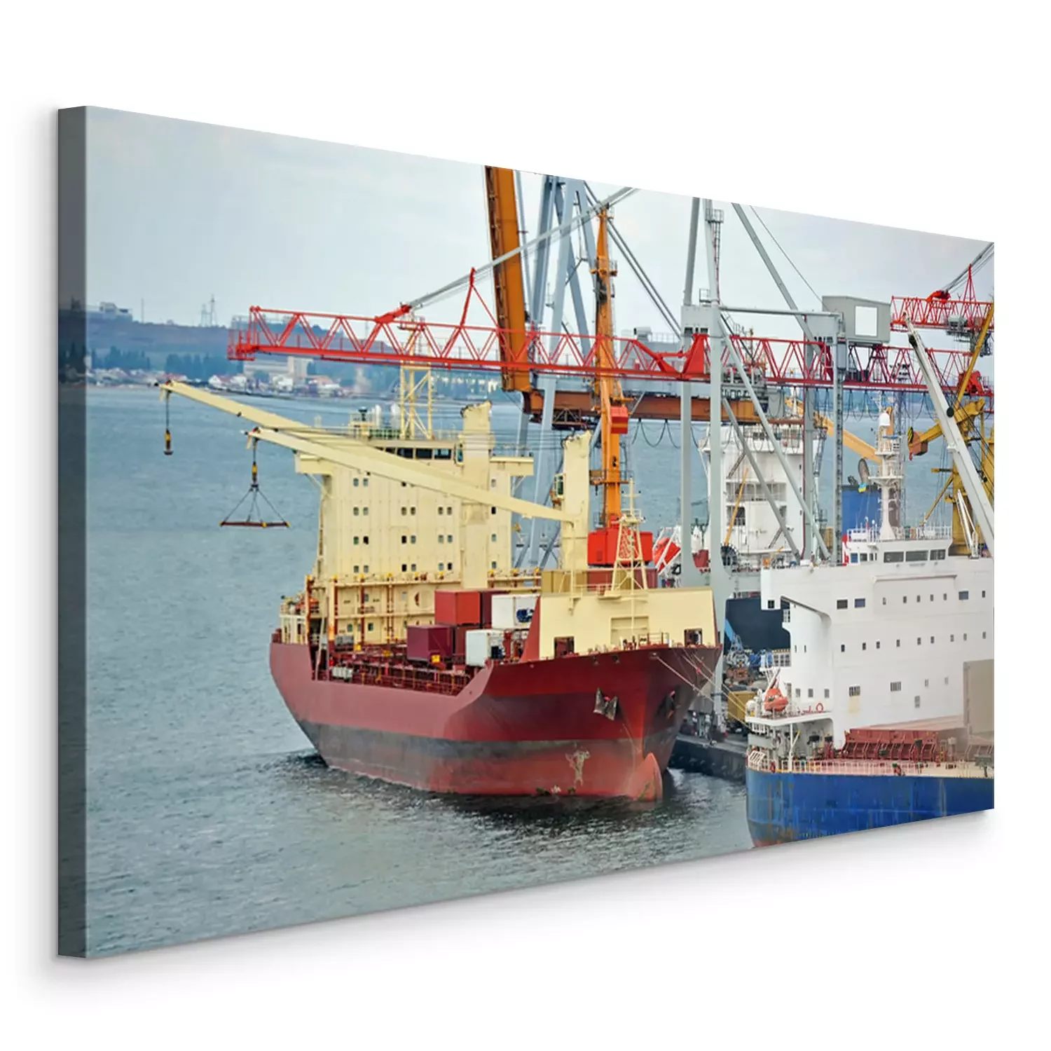 Canvas: Bulkcarrier onder havenkraan brug, Odessa, Oekraïne