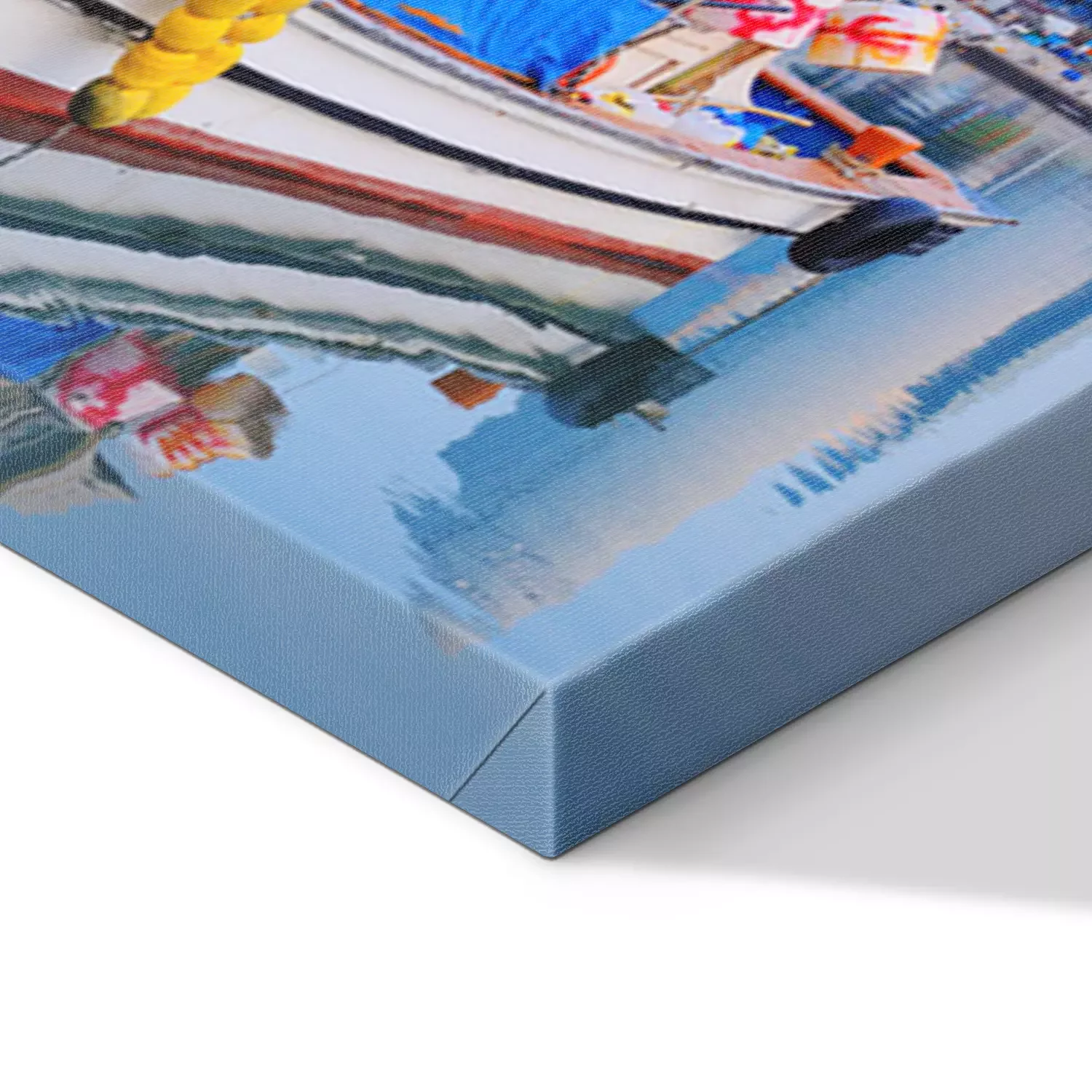 De print wordt aangebracht op hoogwaardig canvas dat op een schildersweefgetouw (spieraam) wordt gespannen. Omdat de print de zijranden bedekt, hoeft het ontwerp niet met een extra kader te worden omlijst. Wij raden ook composities aan die uit meerdere foto's bestaan en zo een coherente compositie vormen.