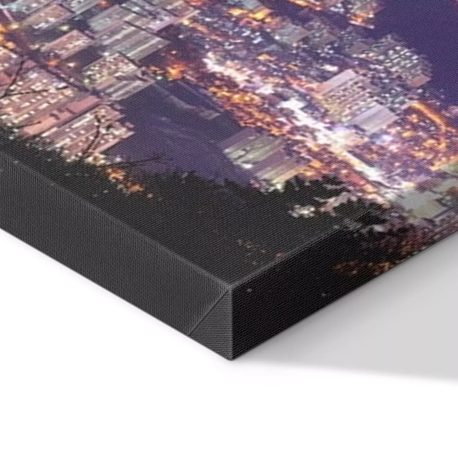 De print wordt aangebracht op hoogwaardig canvas dat op een schildersweefgetouw (spieraam) wordt gespannen. Omdat de print de zijranden bedekt, hoeft het ontwerp niet met een extra kader te worden omlijst. Wij raden ook composities aan die uit meerdere foto's bestaan en zo een coherente compositie vormen.