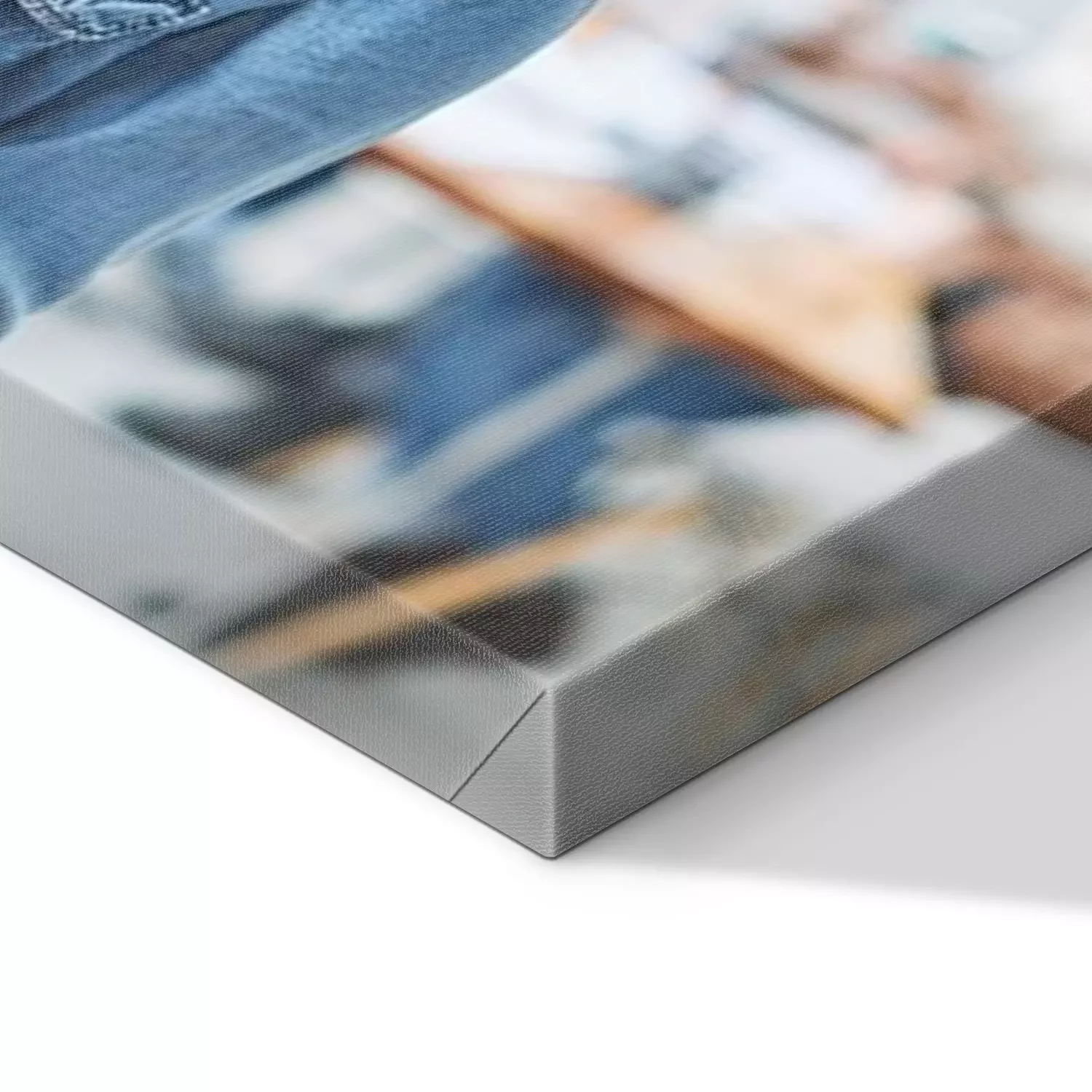 De print wordt aangebracht op hoogwaardig canvas dat op een schildersweefgetouw (spieraam) wordt gespannen. Omdat de print de zijranden bedekt, hoeft het ontwerp niet met een extra kader te worden omlijst. Wij raden ook composities aan die uit meerdere foto's bestaan en zo een coherente compositie vormen.