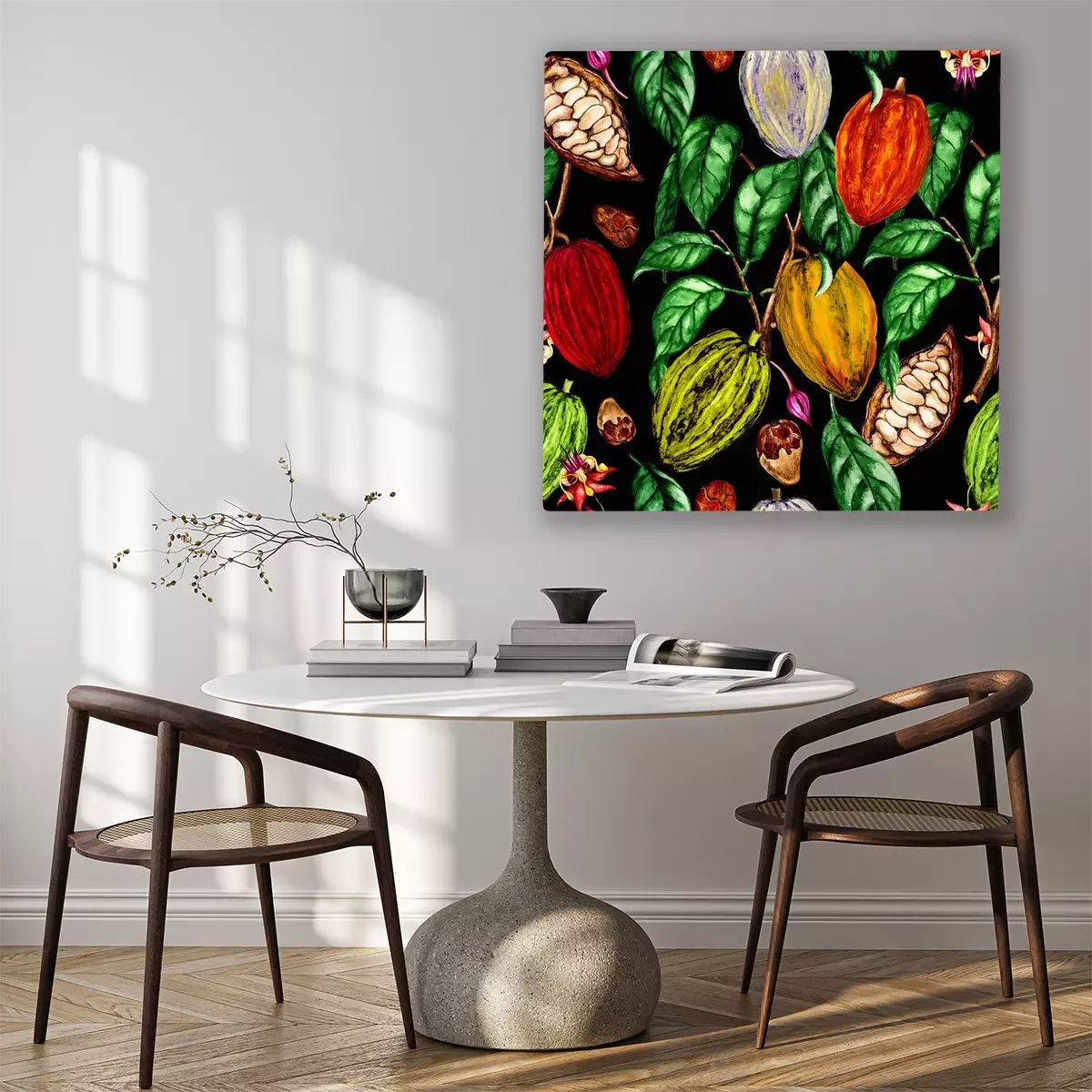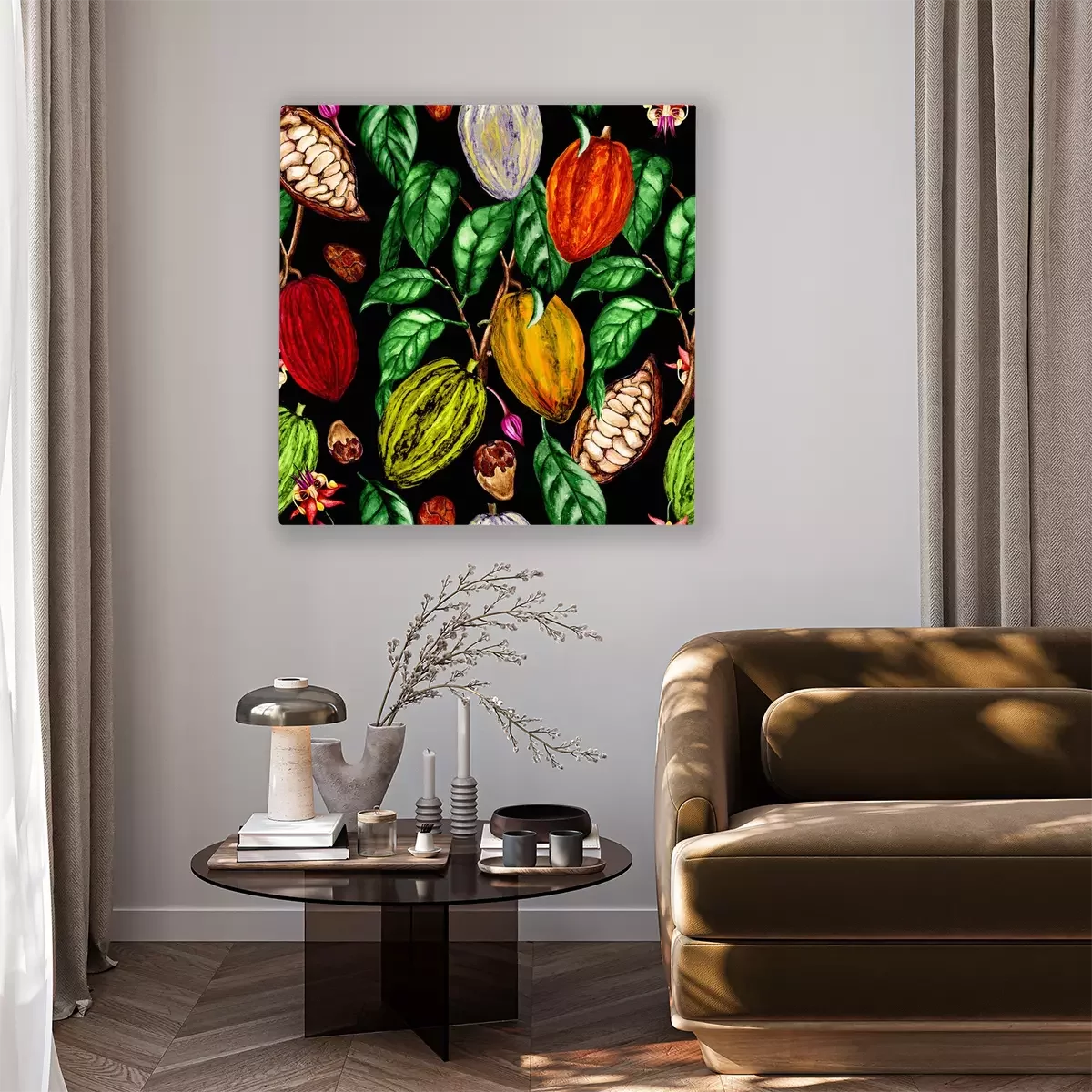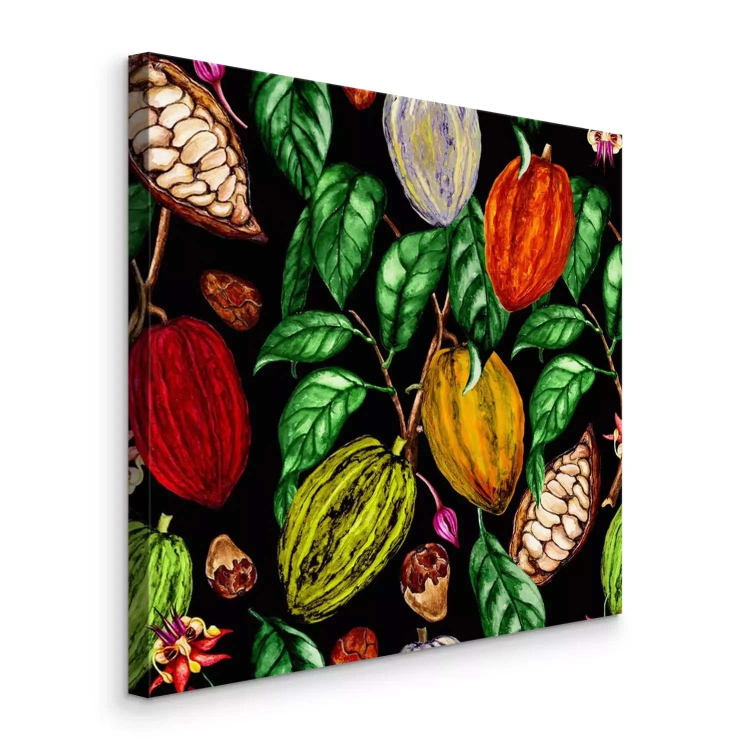 Canvas: Cacaobonen geschilderd met waterverf