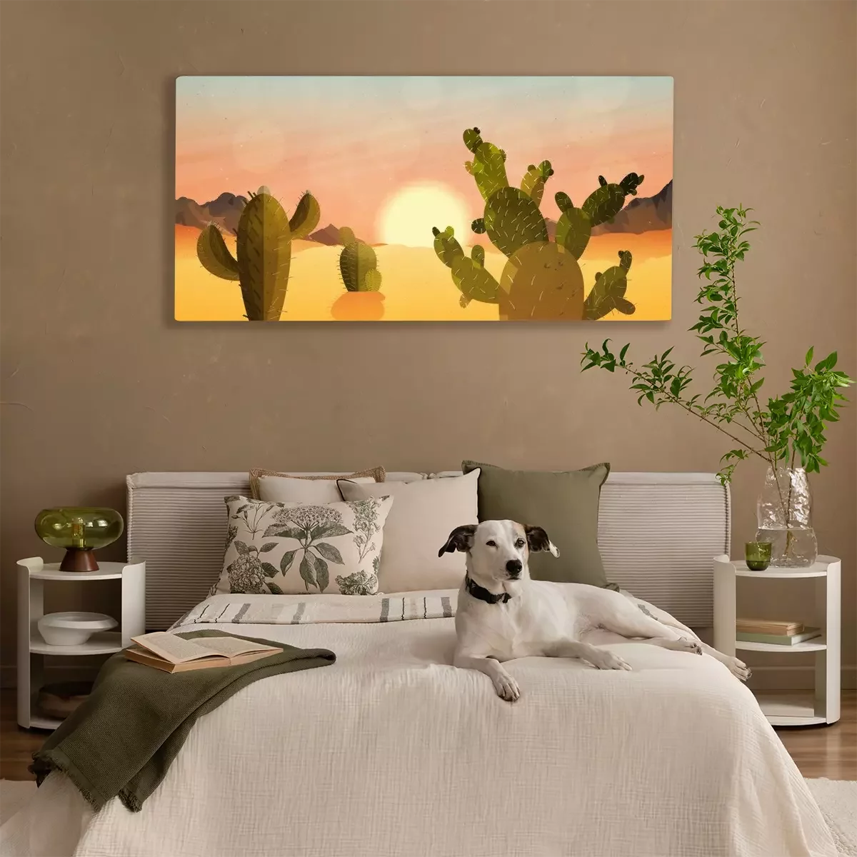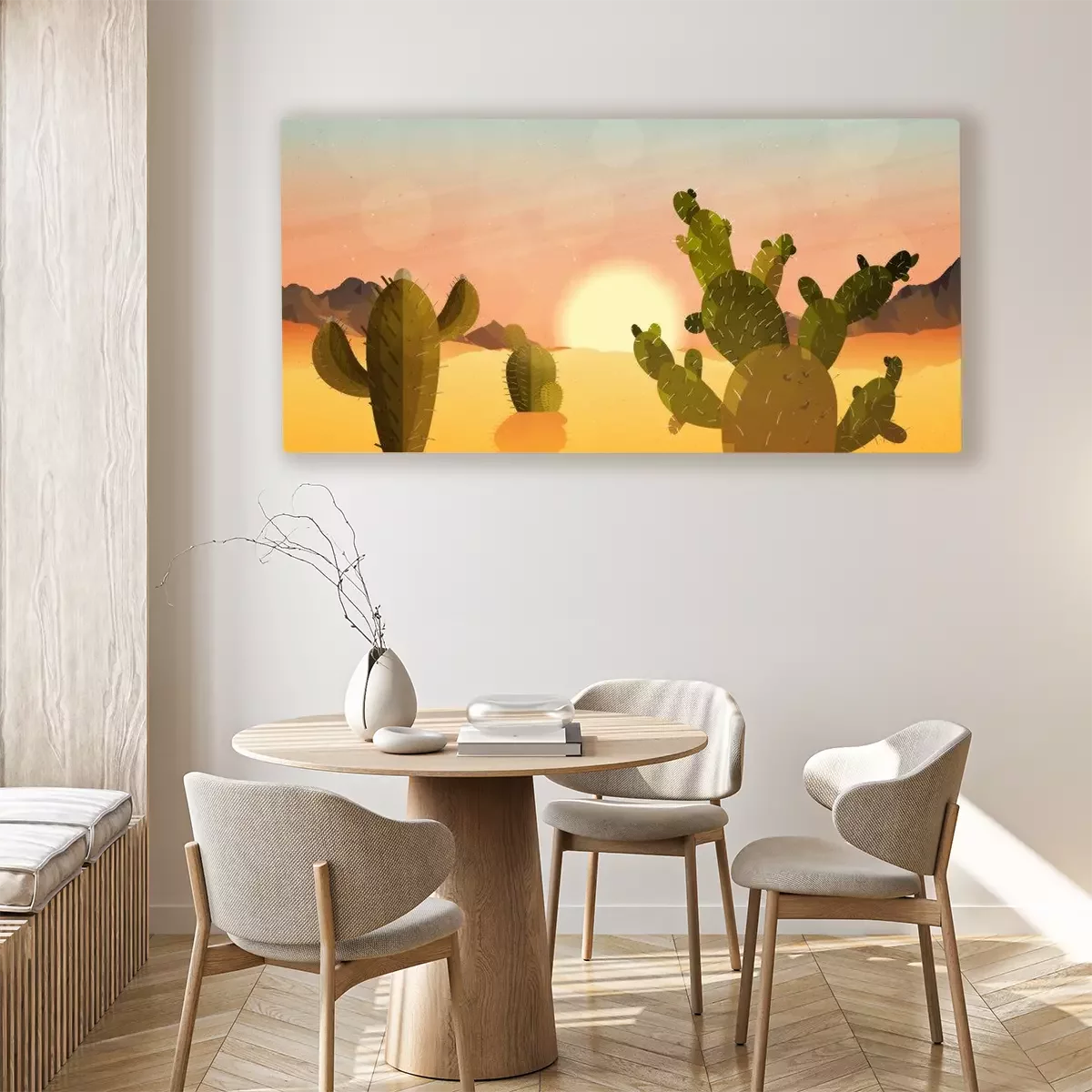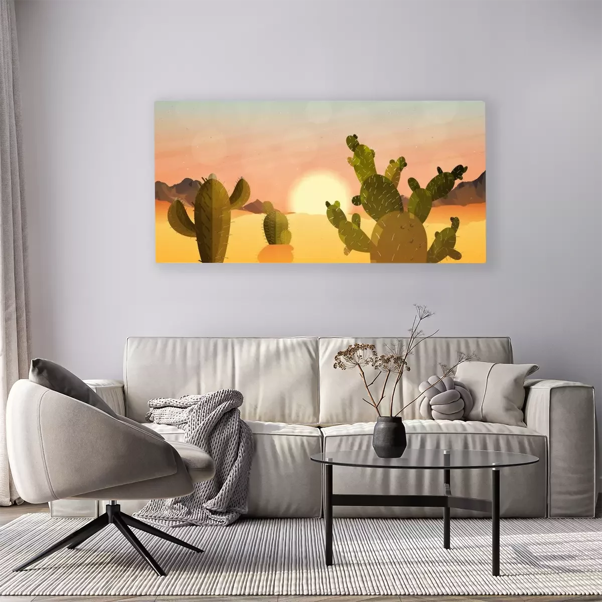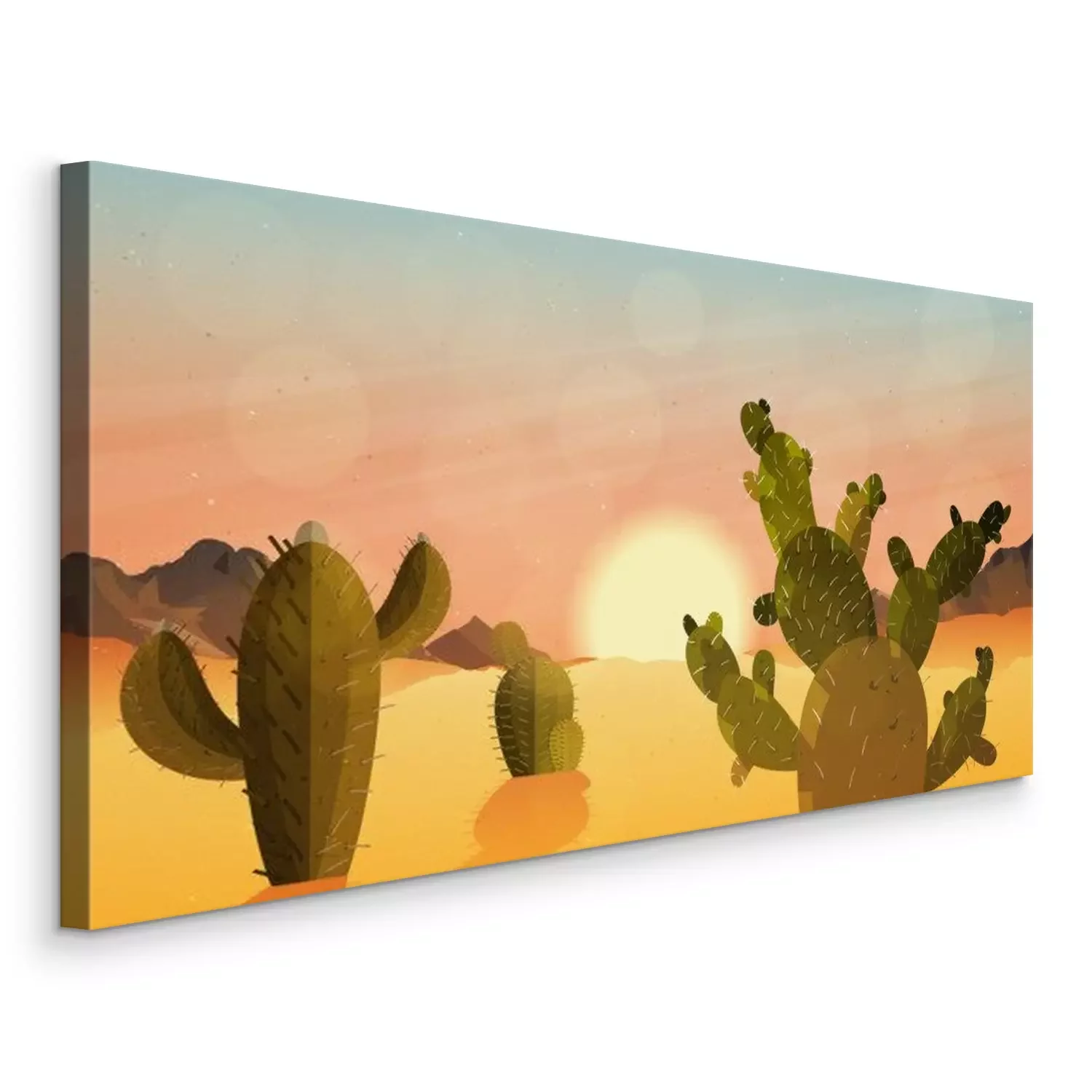 Canvas: Cactussen in woestijn tijdens zonsondergang