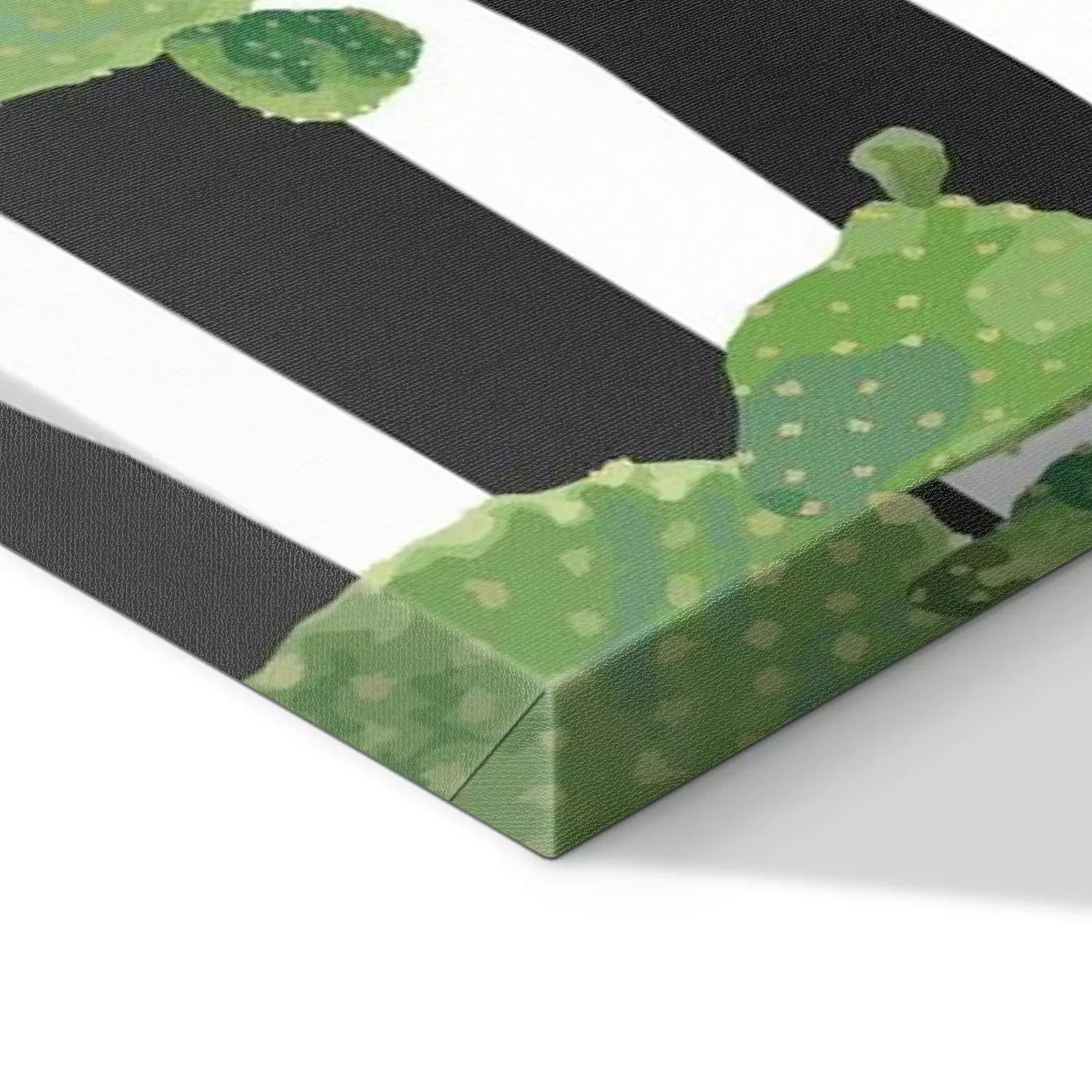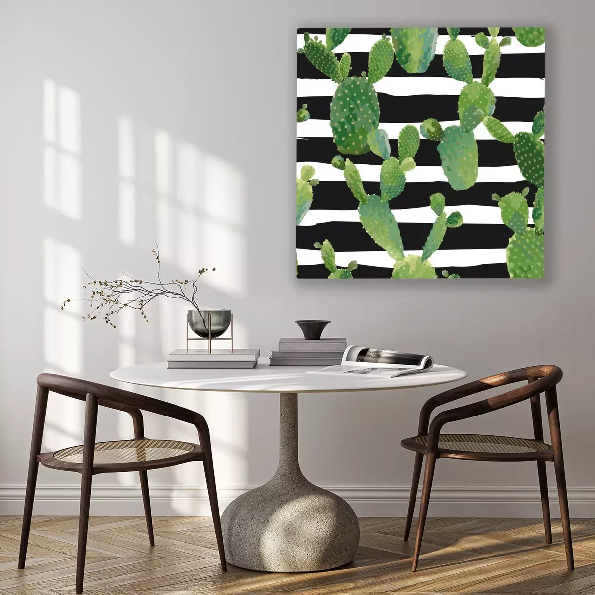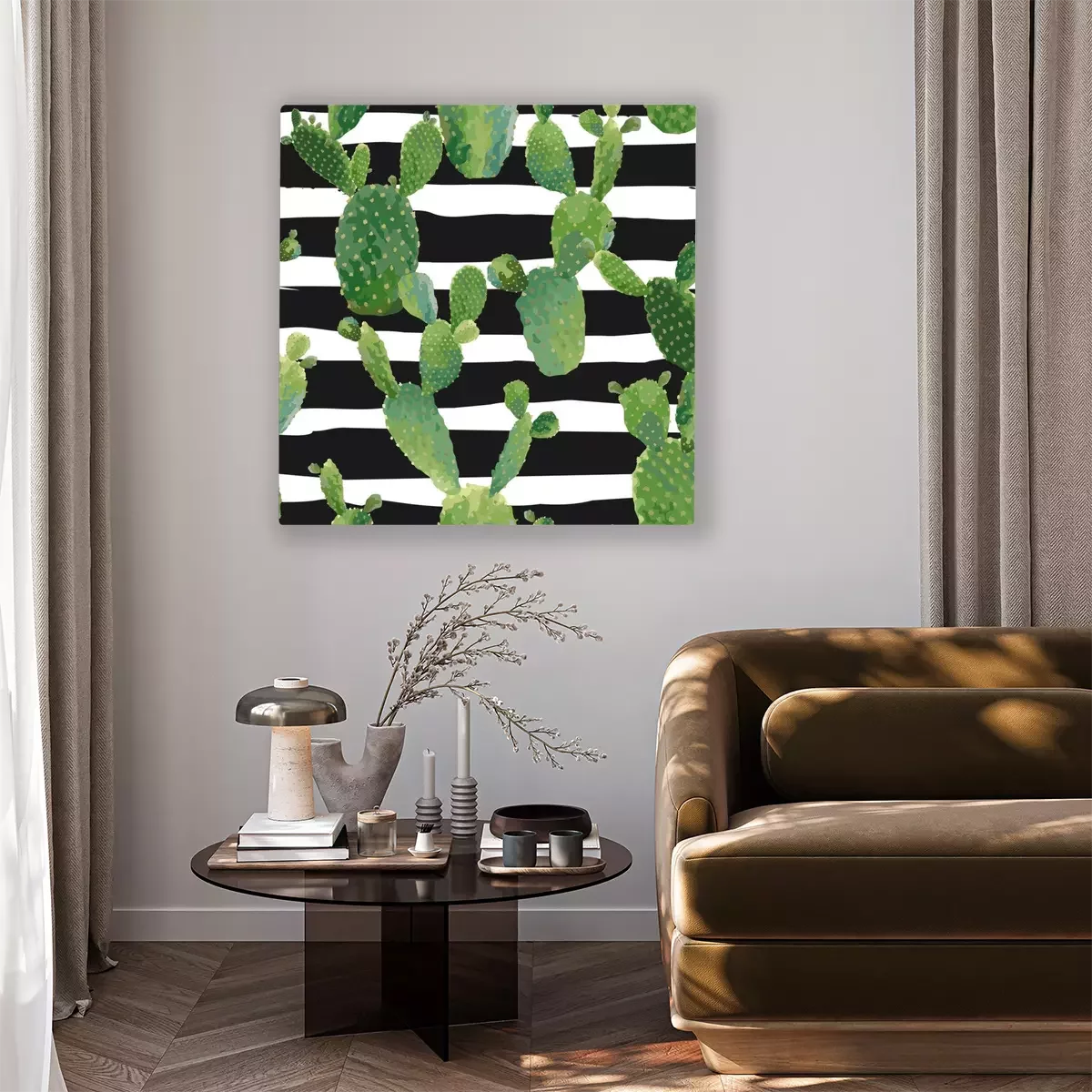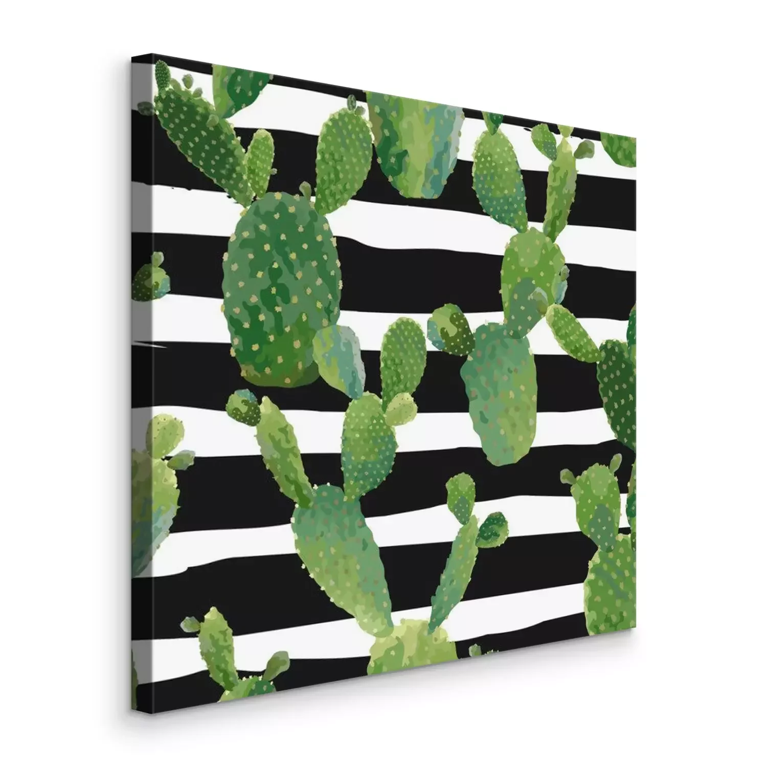 Canvas: Cactussen op zwart-wit gestreepte achtergrond