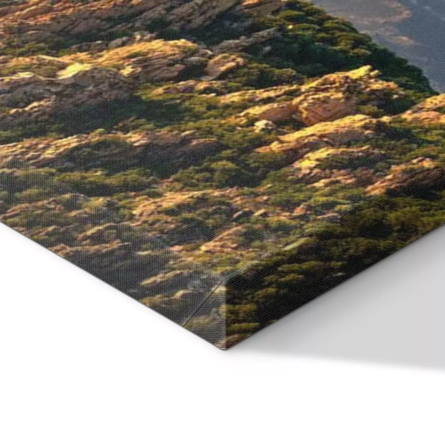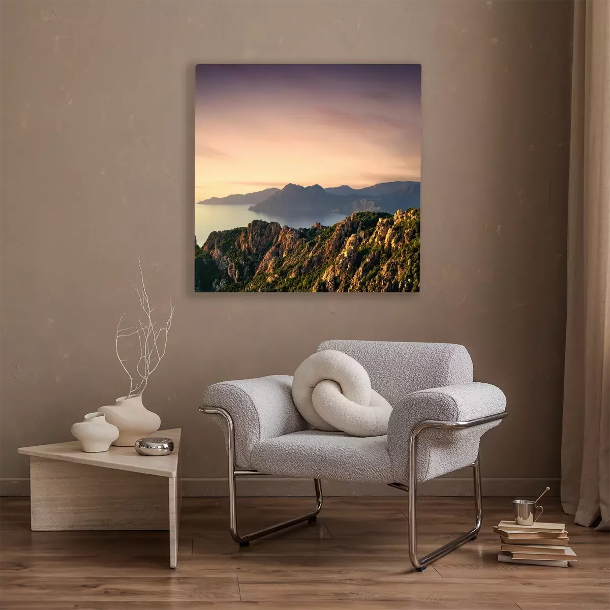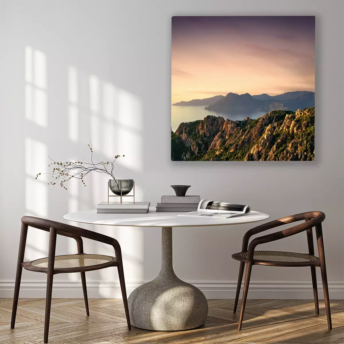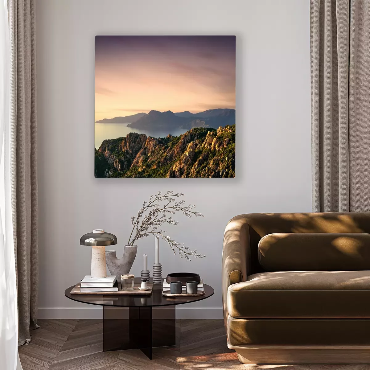 De print wordt aangebracht op hoogwaardig canvas dat op een schildersweefgetouw (spieraam) wordt gespannen. Omdat de print de zijranden bedekt, hoeft het ontwerp niet met een extra kader te worden omlijst. Wij raden ook composities aan die uit meerdere foto's bestaan en zo een coherente compositie vormen.