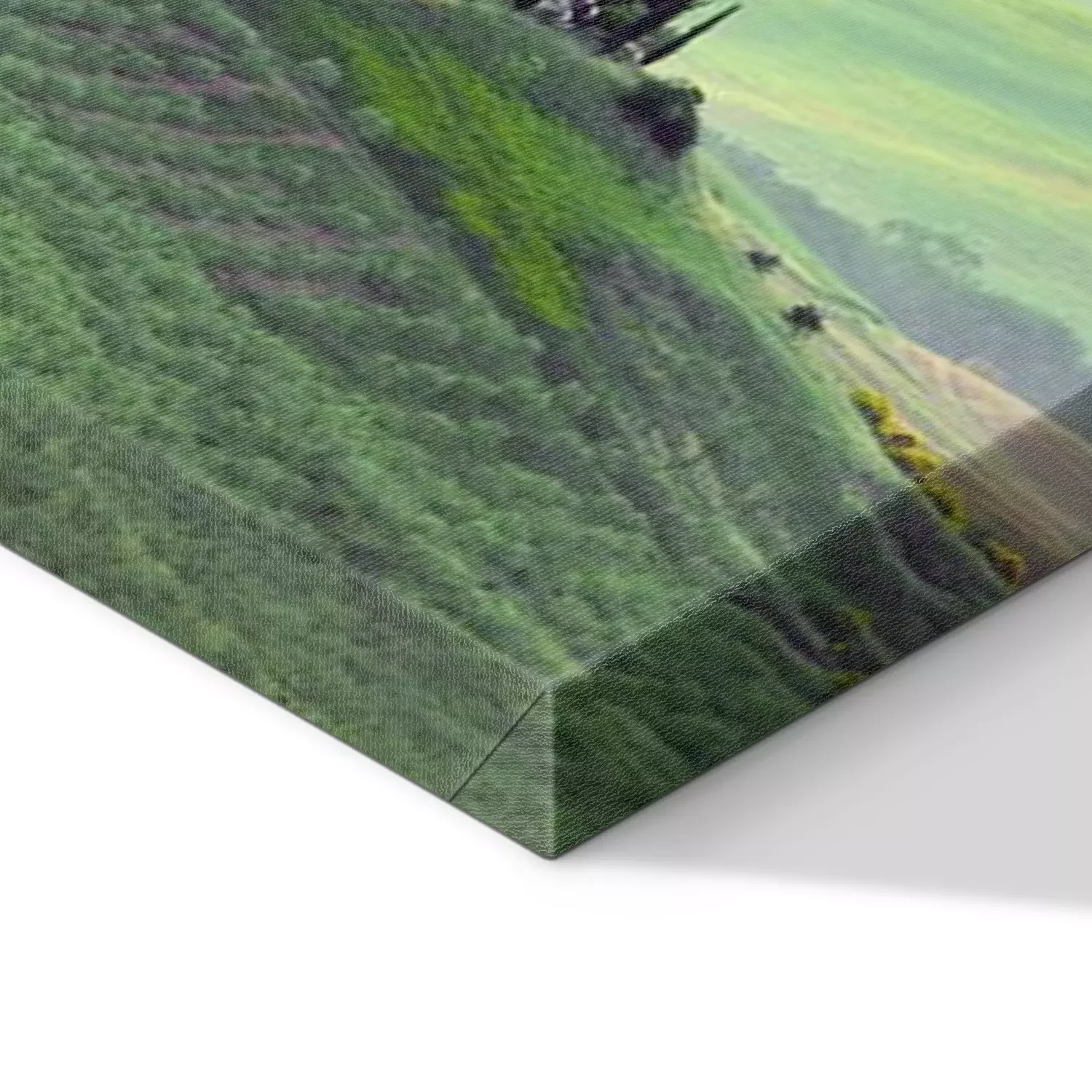 De print wordt aangebracht op hoogwaardig canvas dat op een schildersweefgetouw (spieraam) wordt gespannen. Omdat de print de zijranden bedekt, hoeft het ontwerp niet met een extra kader te worden omlijst. Wij raden ook composities aan die uit meerdere foto's bestaan en zo een coherente compositie vormen.