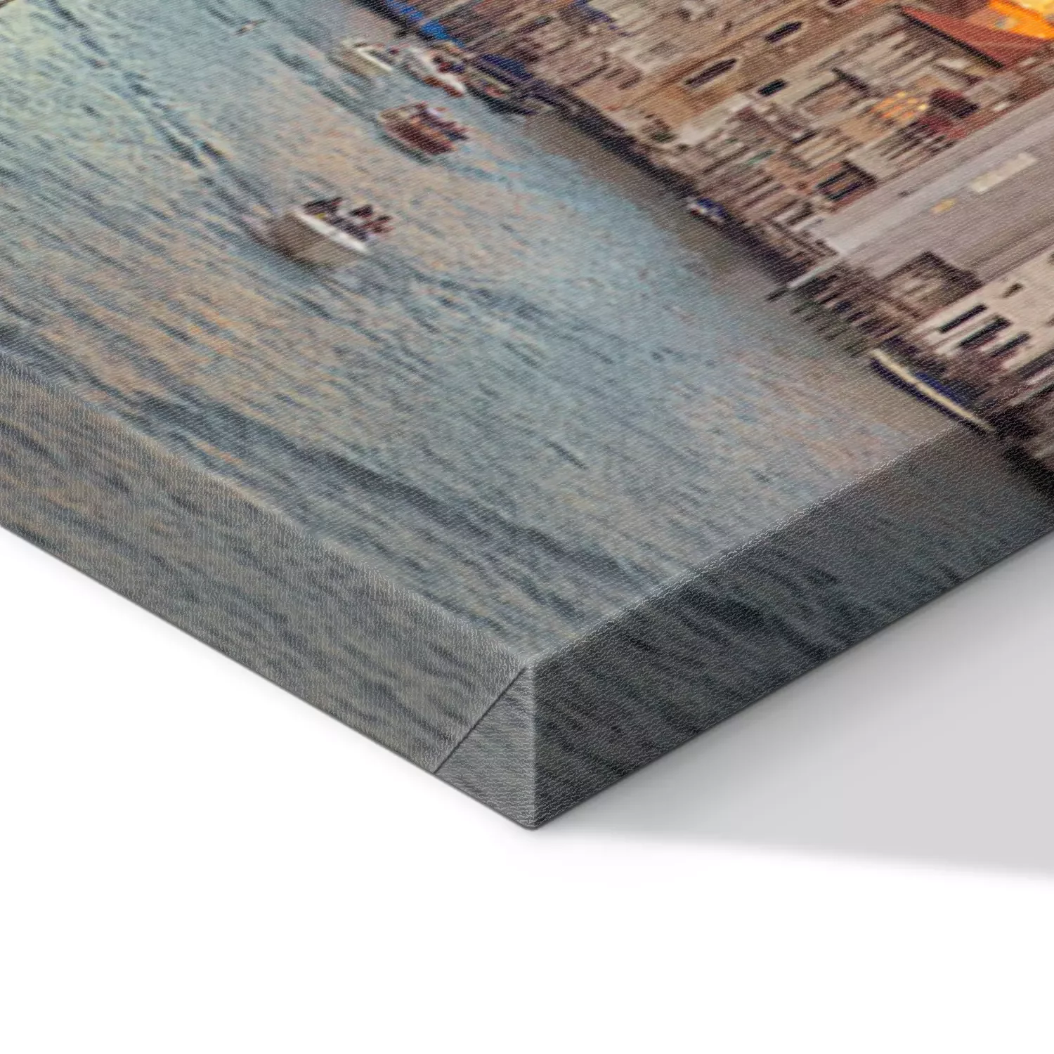 De print wordt aangebracht op hoogwaardig canvas dat op een schildersweefgetouw (spieraam) wordt gespannen. Omdat de print de zijranden bedekt, hoeft het ontwerp niet met een extra kader te worden omlijst. Wij raden ook composities aan die uit meerdere foto's bestaan en zo een coherente compositie vormen.
