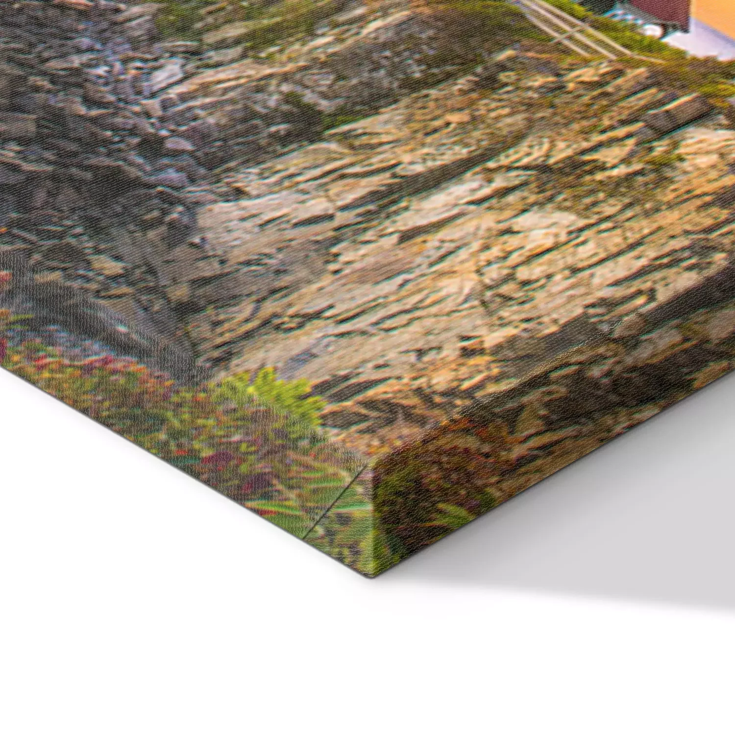 De print wordt aangebracht op hoogwaardig canvas dat op een schildersweefgetouw (spieraam) wordt gespannen. Omdat de print de zijranden bedekt, hoeft het ontwerp niet met een extra kader te worden omlijst. Wij raden ook composities aan die uit meerdere foto's bestaan en zo een coherente compositie vormen.