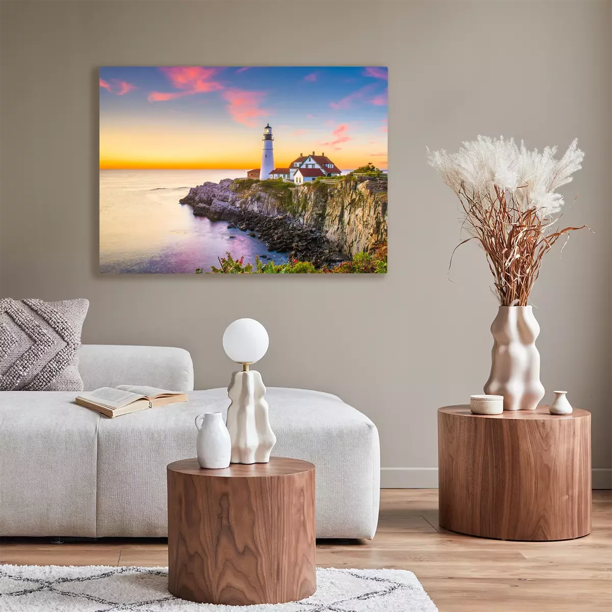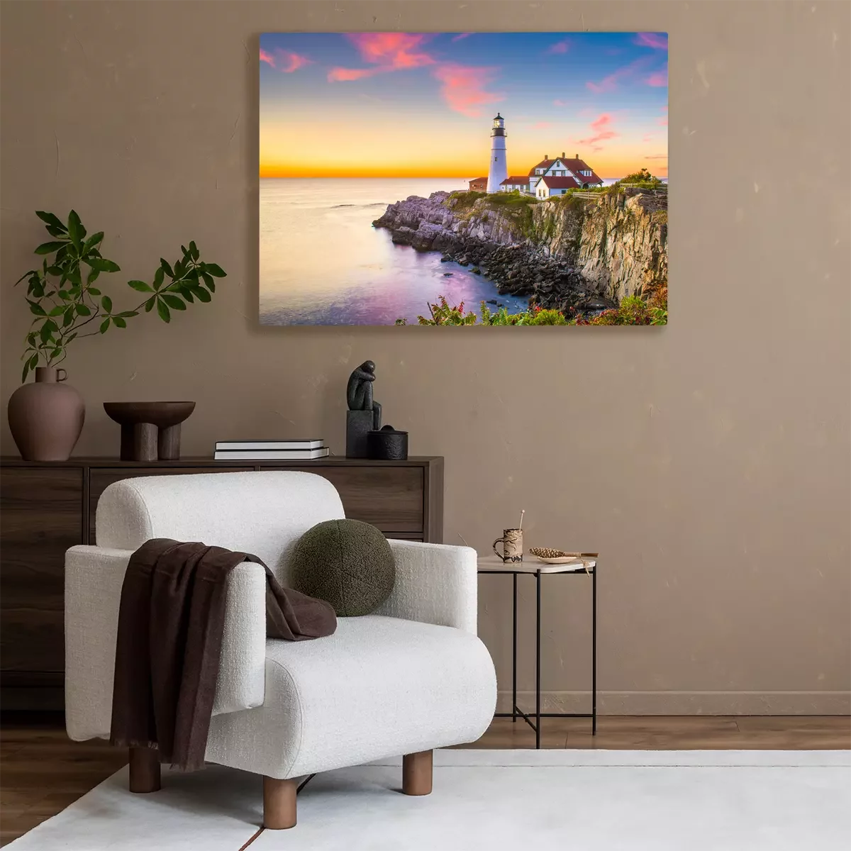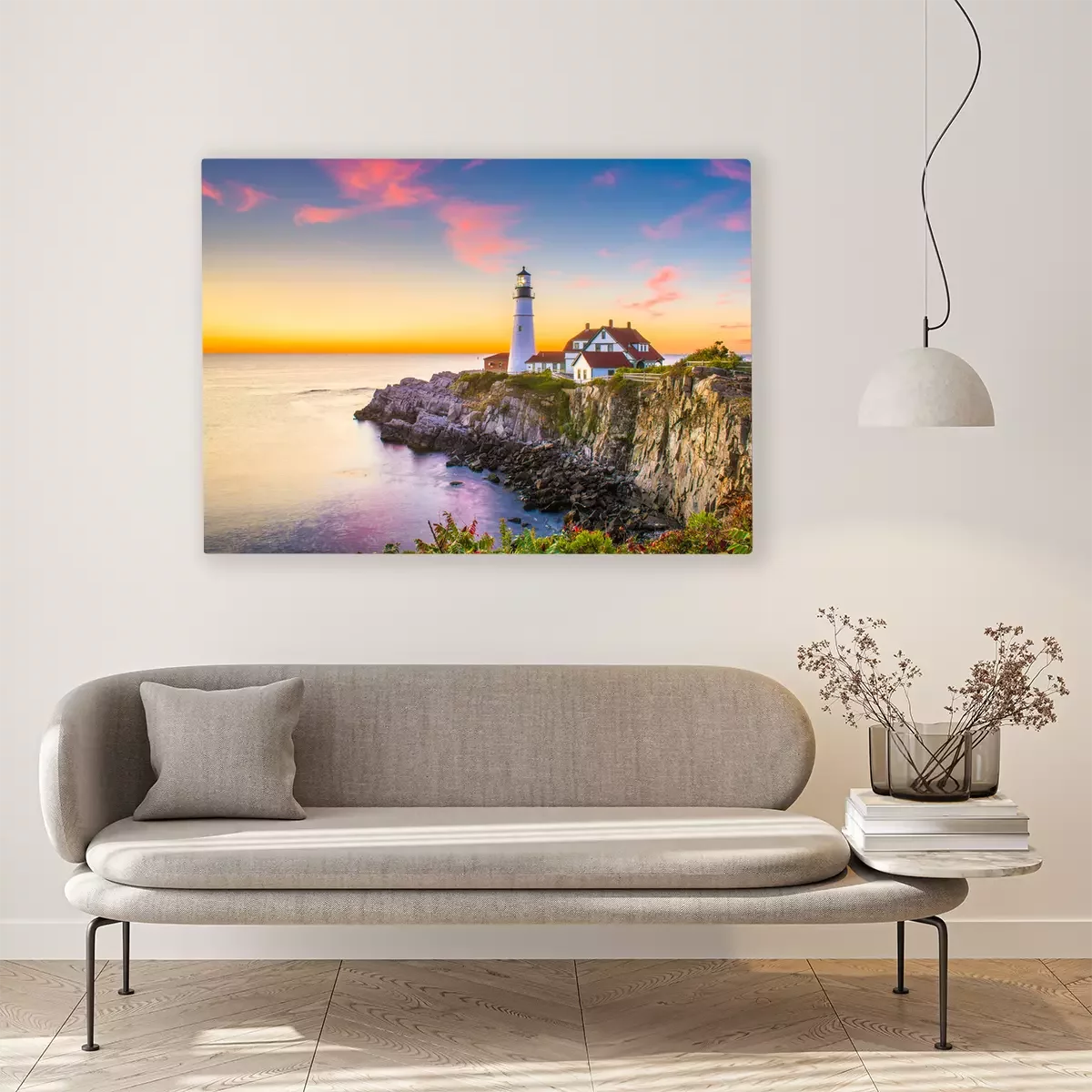 Canvas: Cape Elizabeth, Maine, Verenigde Staten bij Portland Head Light bij dageraad.