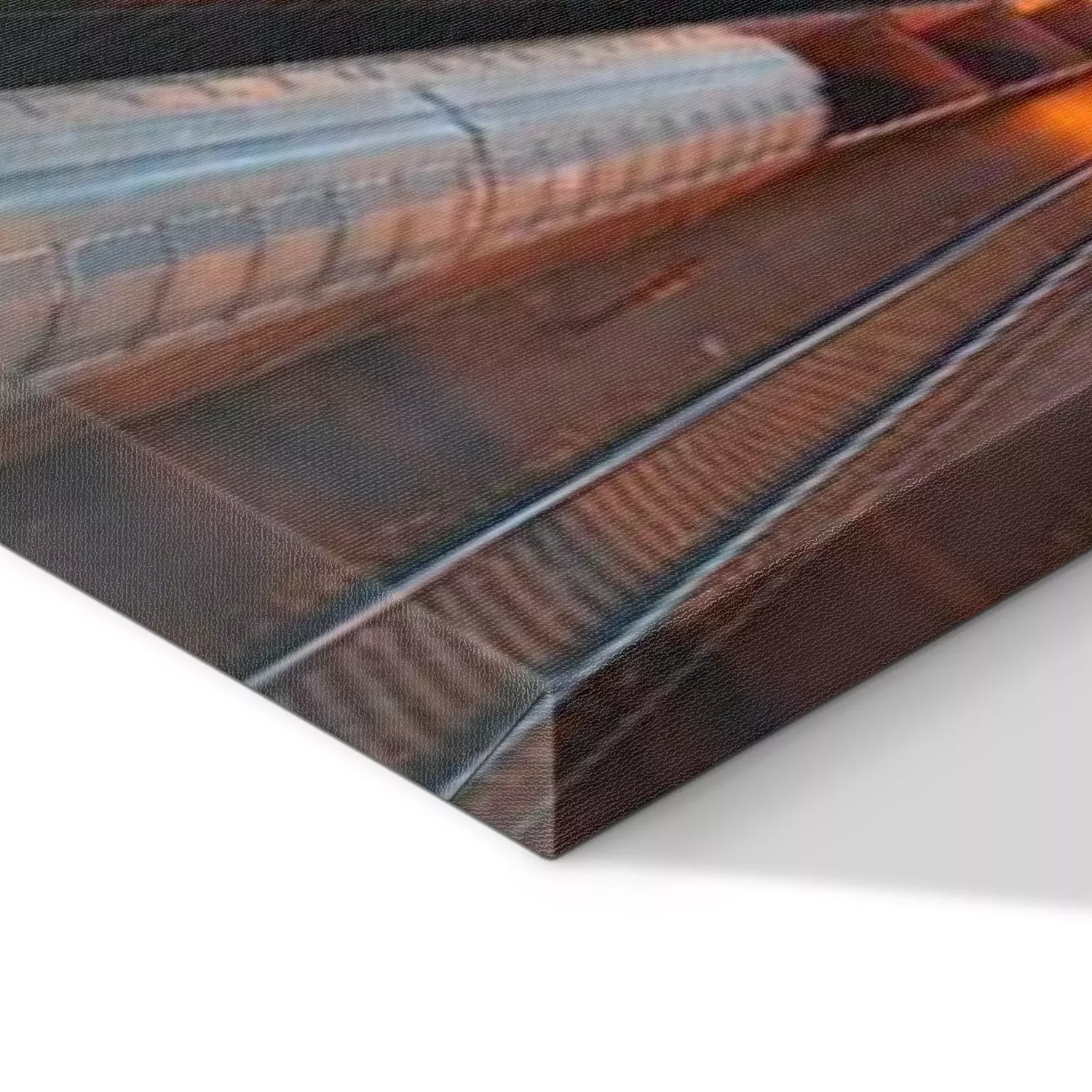 De print wordt aangebracht op hoogwaardig canvas dat op een schildersweefgetouw (spieraam) wordt gespannen. Omdat de print de zijranden bedekt, hoeft het ontwerp niet met een extra kader te worden omlijst. Wij raden ook composities aan die uit meerdere foto's bestaan en zo een coherente compositie vormen.