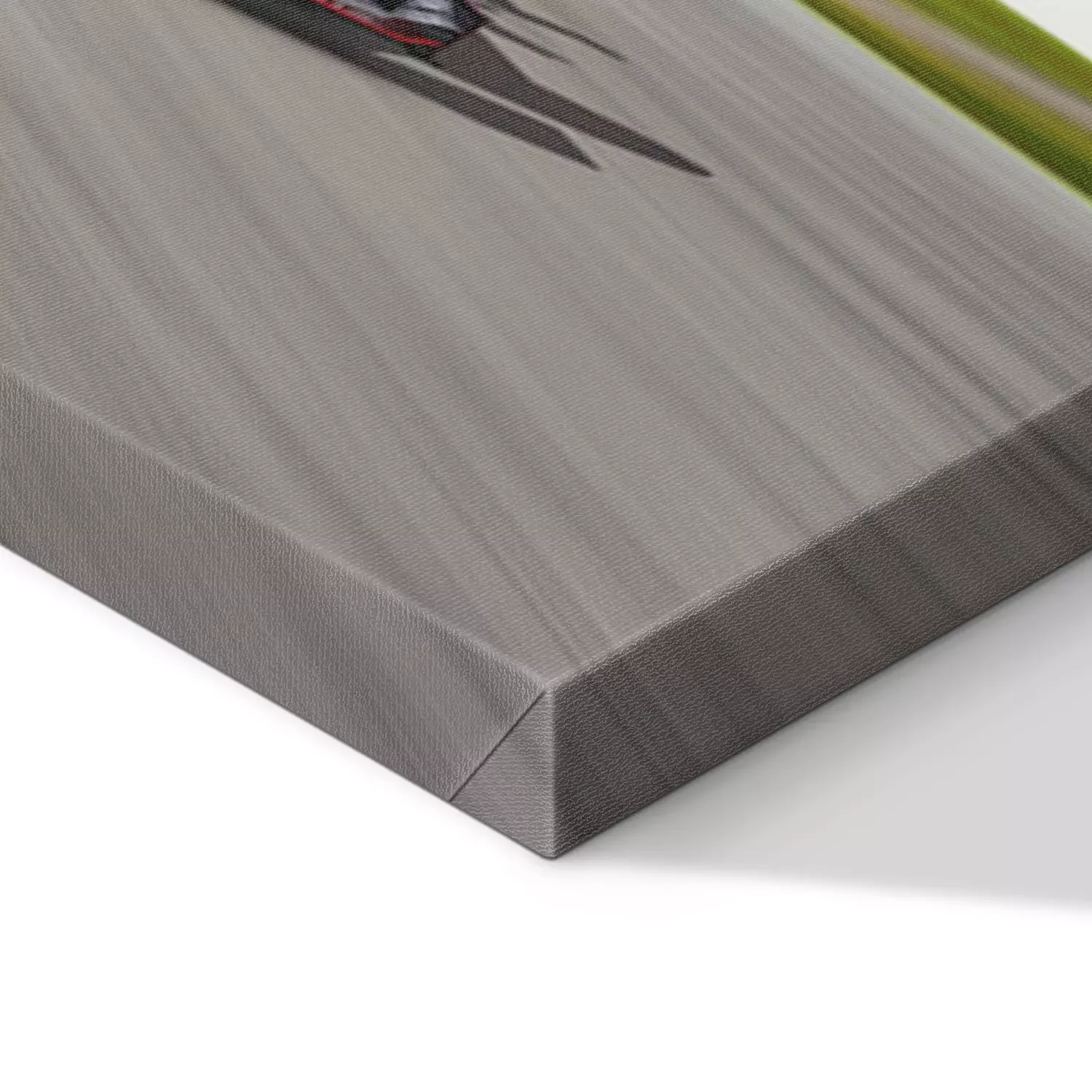 De print wordt aangebracht op hoogwaardig canvas dat op een schildersweefgetouw (spieraam) wordt gespannen. Omdat de print de zijranden bedekt, hoeft het ontwerp niet met een extra kader te worden omlijst. Wij raden ook composities aan die uit meerdere foto's bestaan en zo een coherente compositie vormen.
