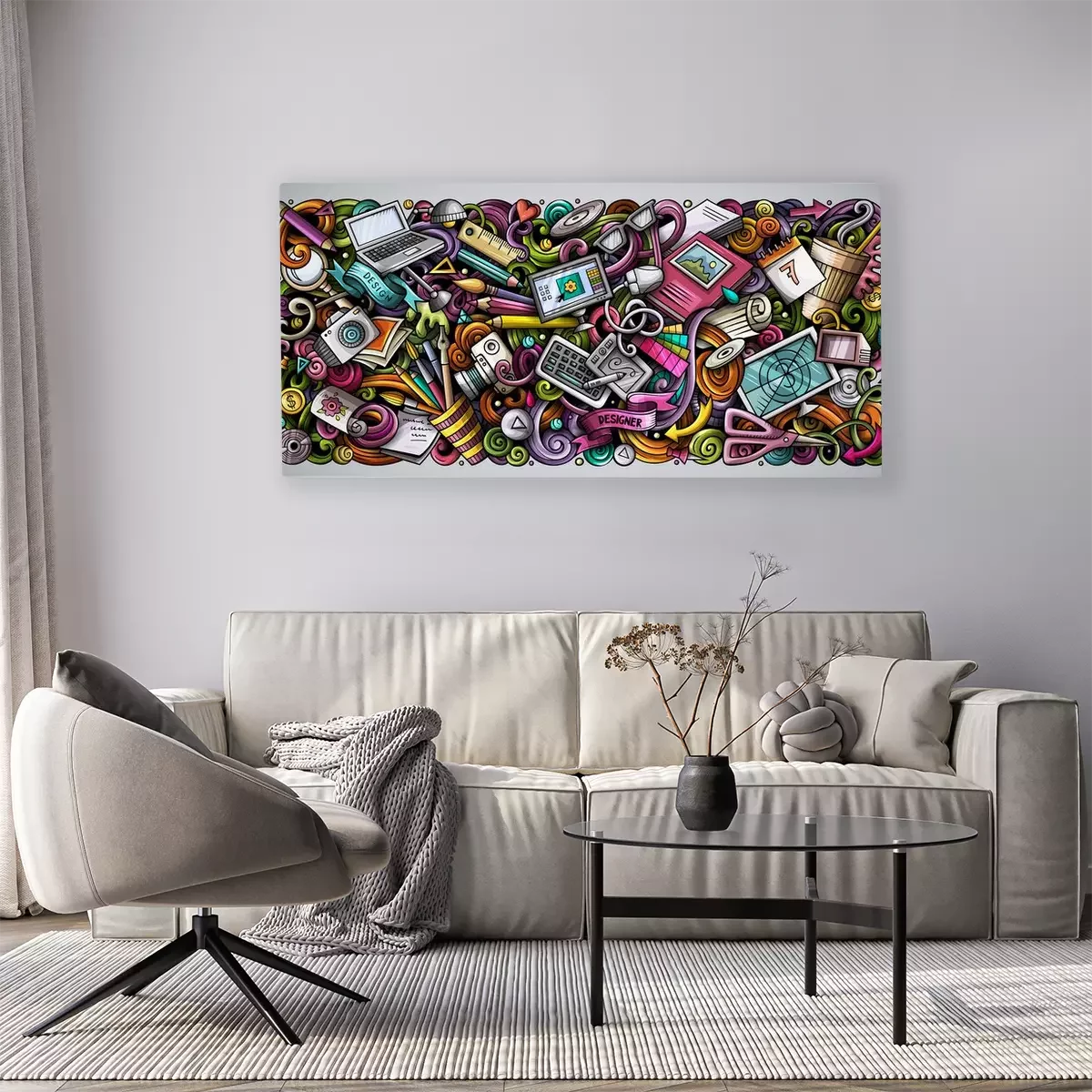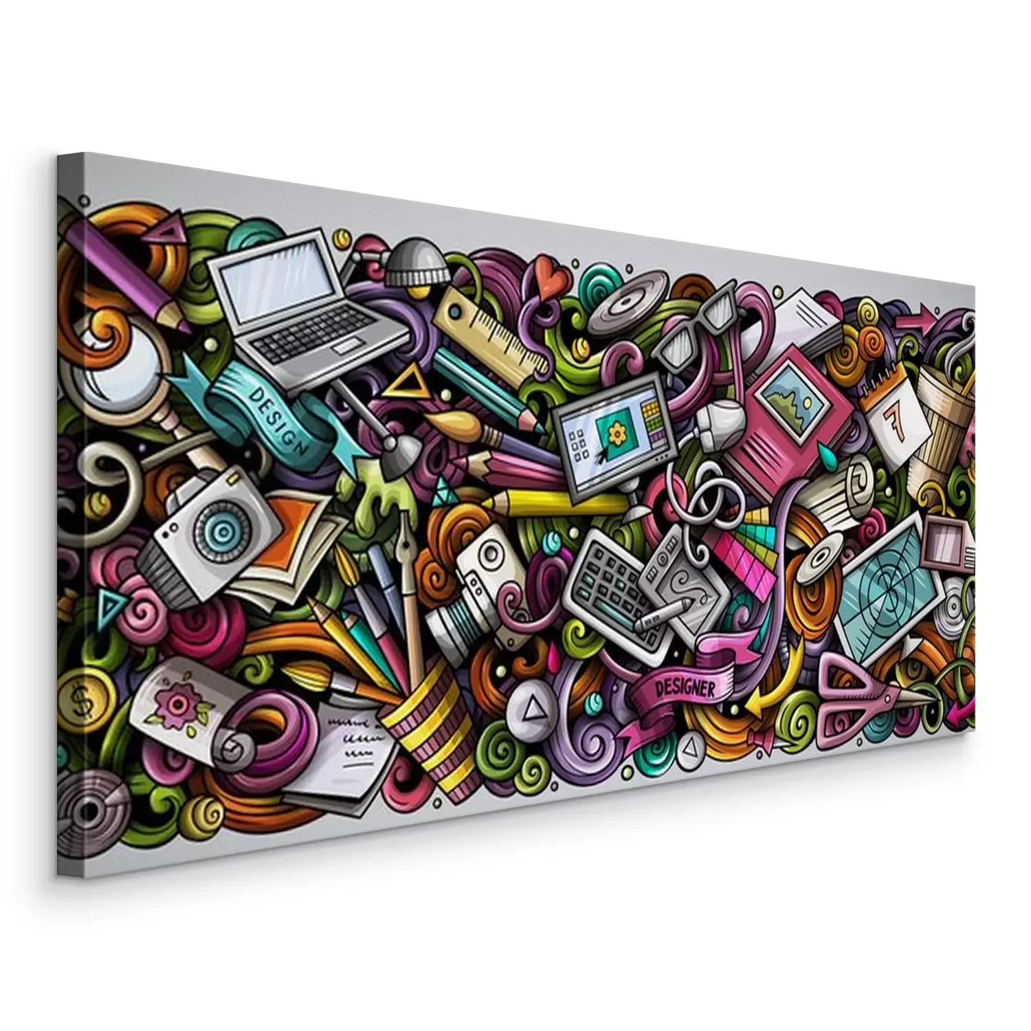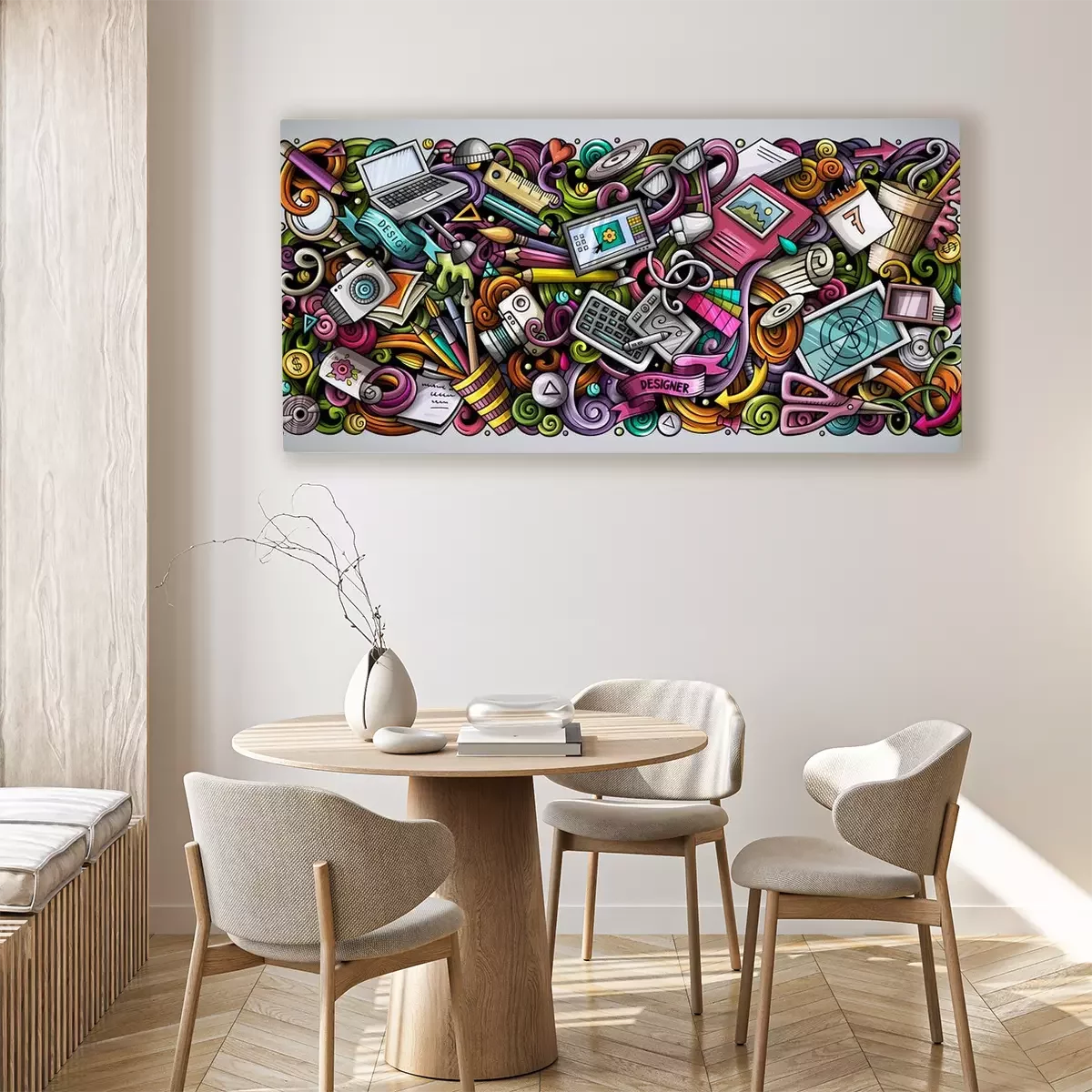 Canvas: Cartoon doodles Art and Design horizontal stripe illustration