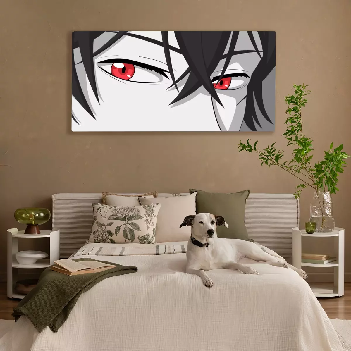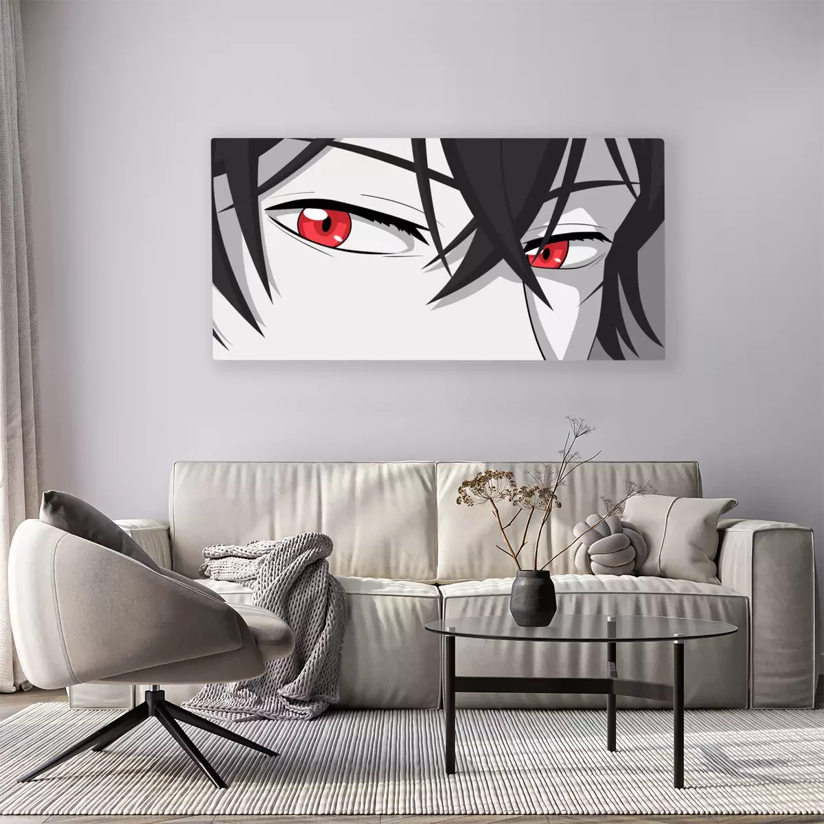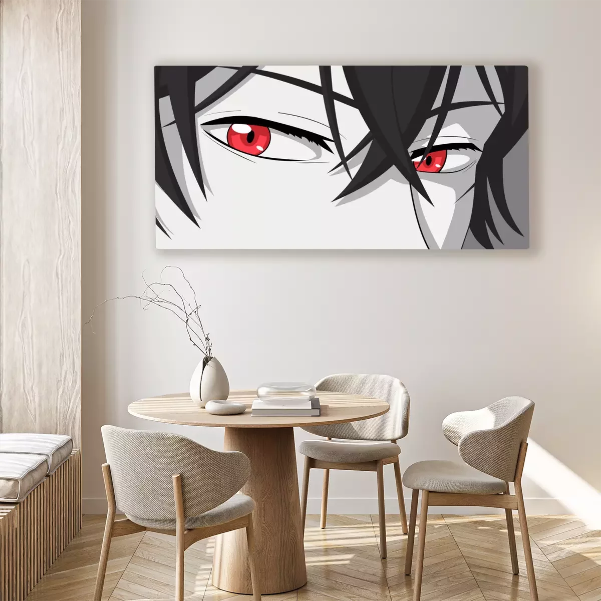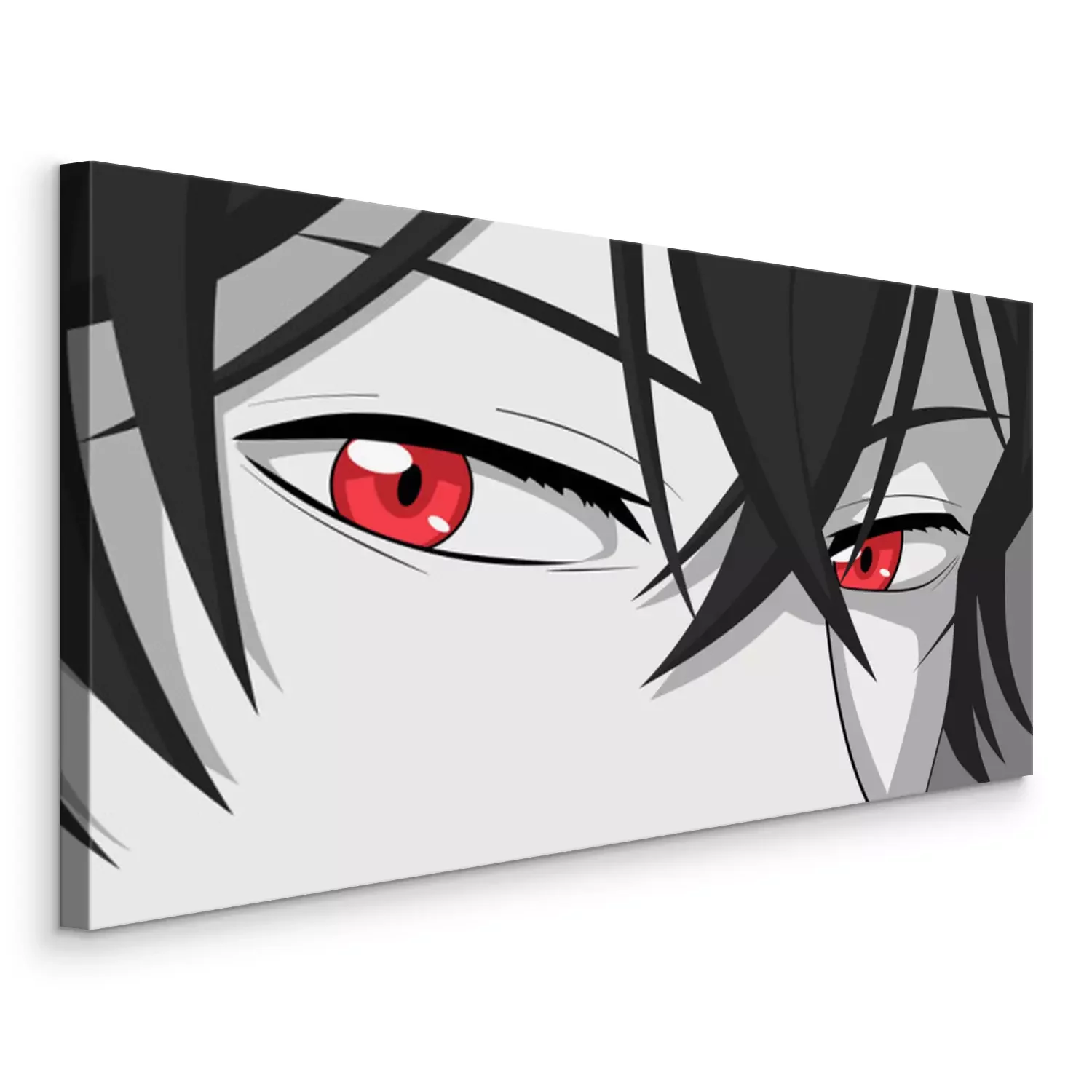 Canvas Cartoon face with red eyes. Vector illustration for anime, manga in japanese style