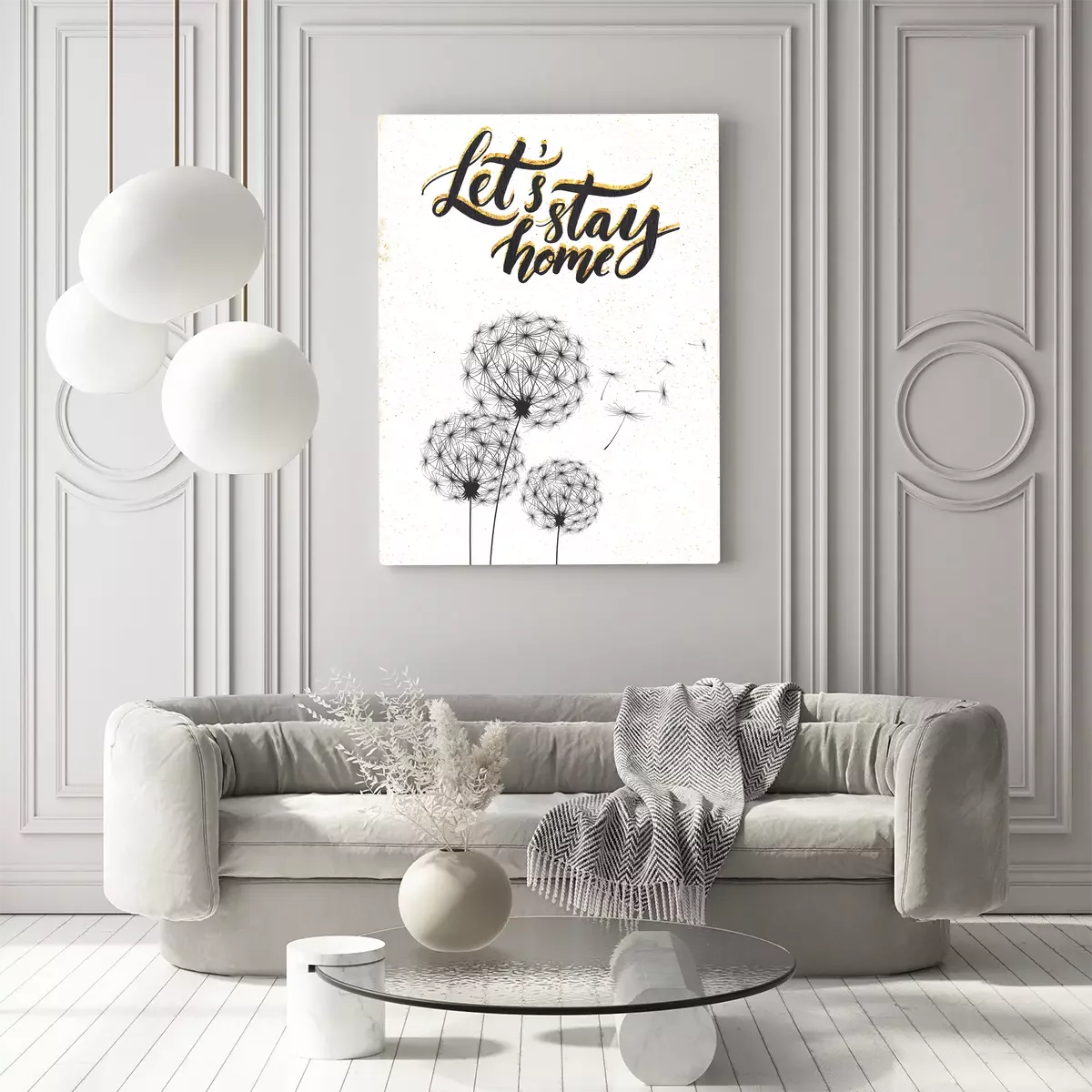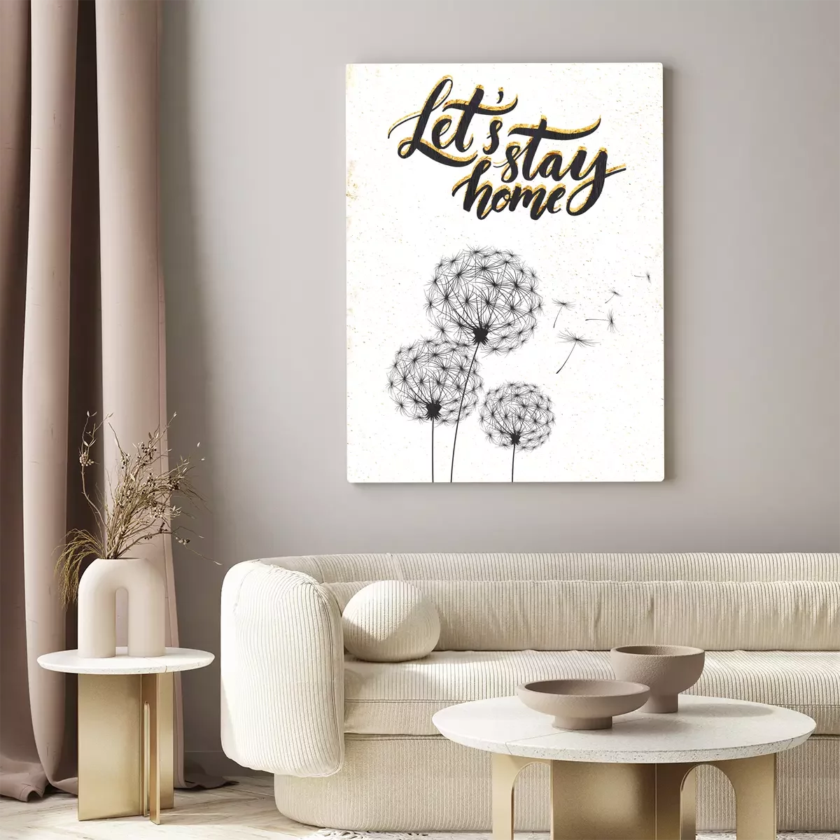 Cartoon paardenbloemen met de tekst 'blijf thuis'