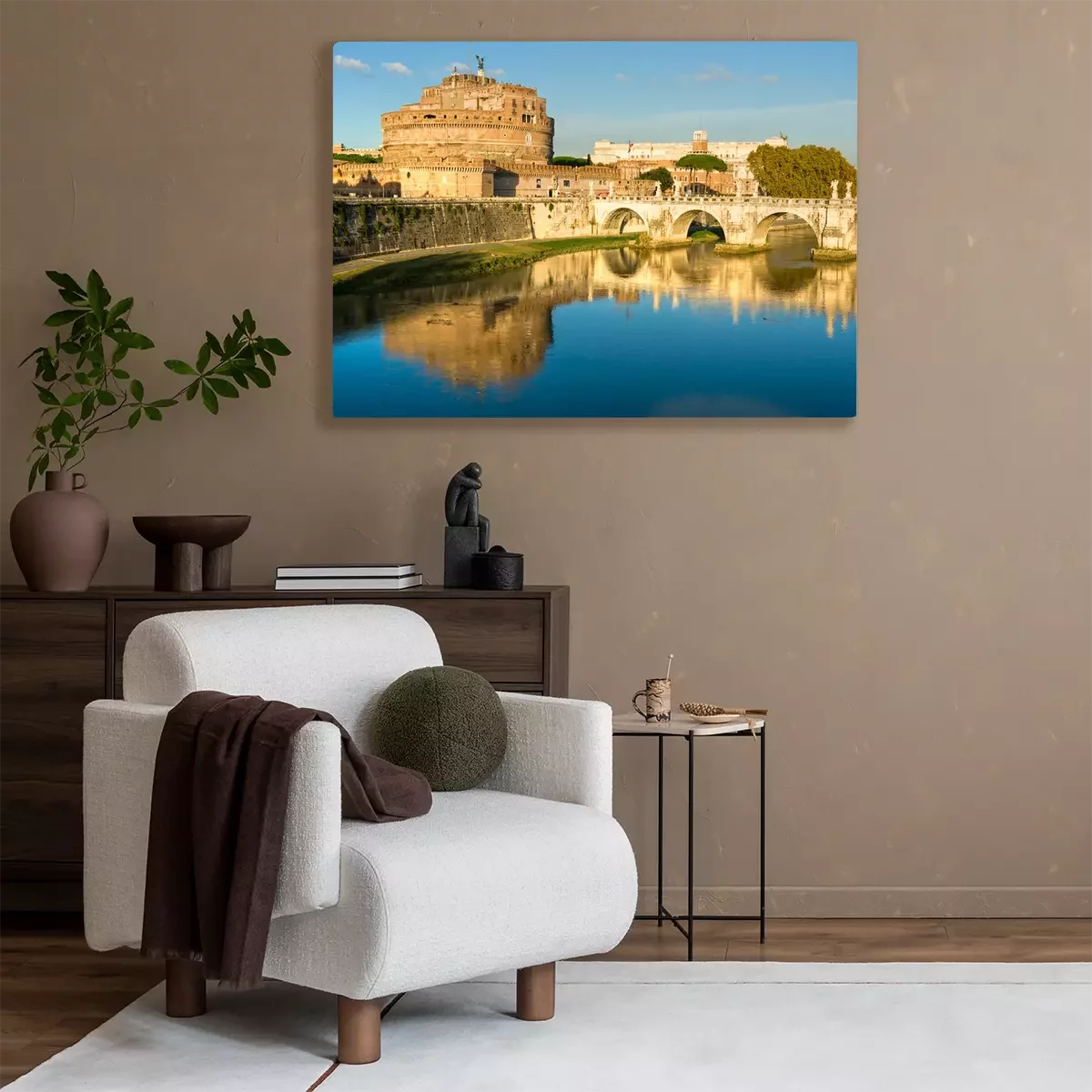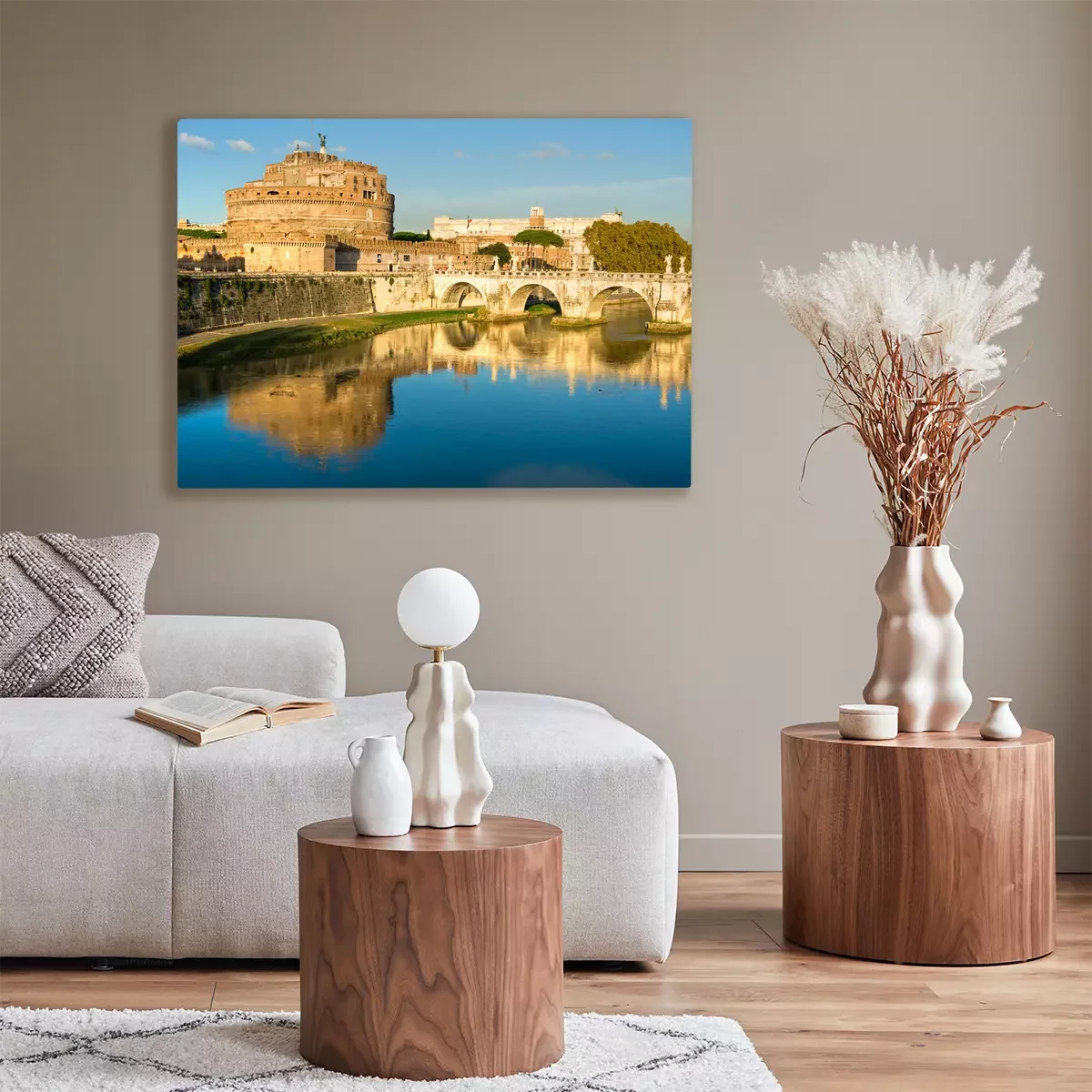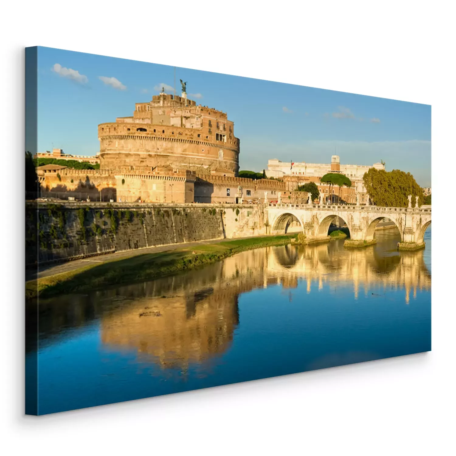 Canvas Castel Sant'Angelo en de brug bij zonsondergang, Rome, Italië.