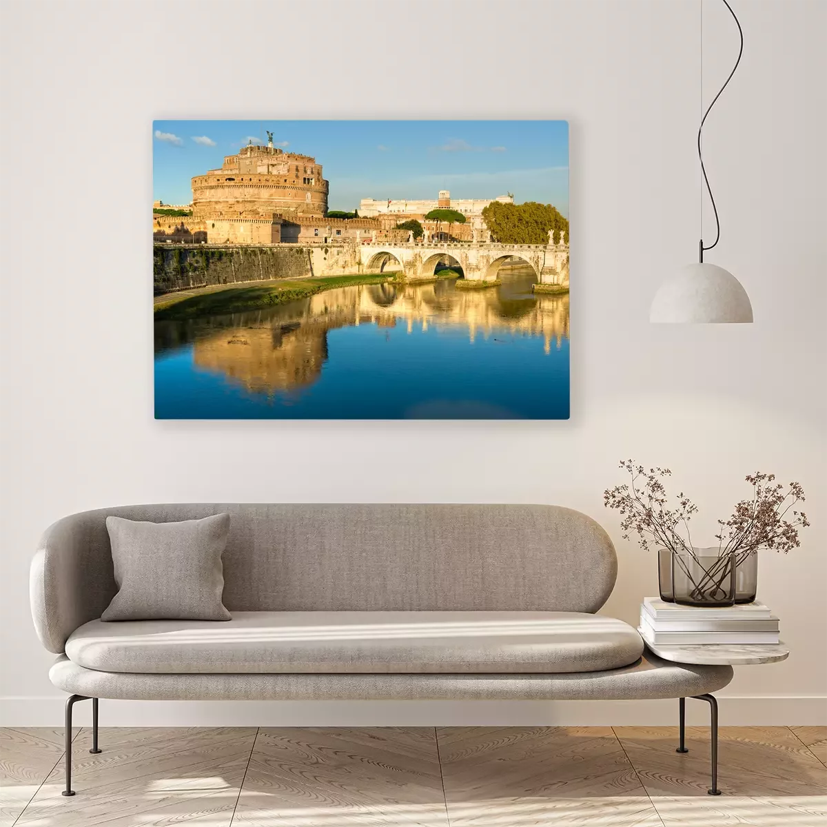 Canvas: Castel Sant'Angelo en de brug bij zonsondergang, Rome, Italië.