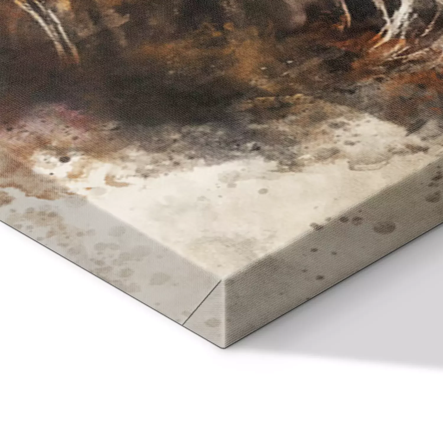 De print wordt aangebracht op hoogwaardig canvas dat op een schildersweefgetouw (spieraam) wordt gespannen. Omdat de print de zijranden bedekt, hoeft het ontwerp niet met een extra kader te worden omlijst. Wij raden ook composities aan die uit meerdere foto's bestaan en zo een coherente compositie vormen.