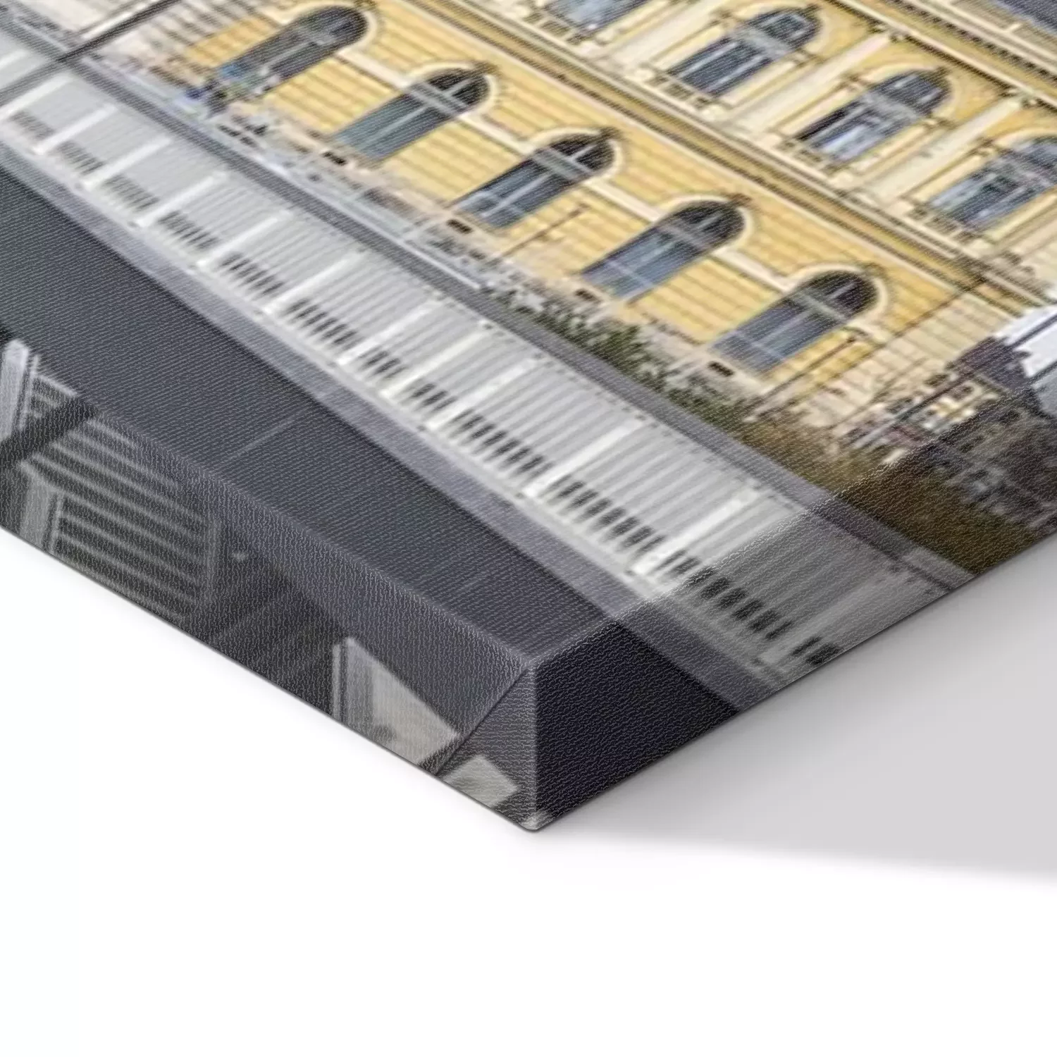 De print wordt aangebracht op hoogwaardig canvas dat op een schildersweefgetouw (spieraam) wordt gespannen. Omdat de print de zijranden bedekt, hoeft het ontwerp niet met een extra kader te worden omlijst. Wij raden ook composities aan die uit meerdere foto's bestaan en zo een coherente compositie vormen.