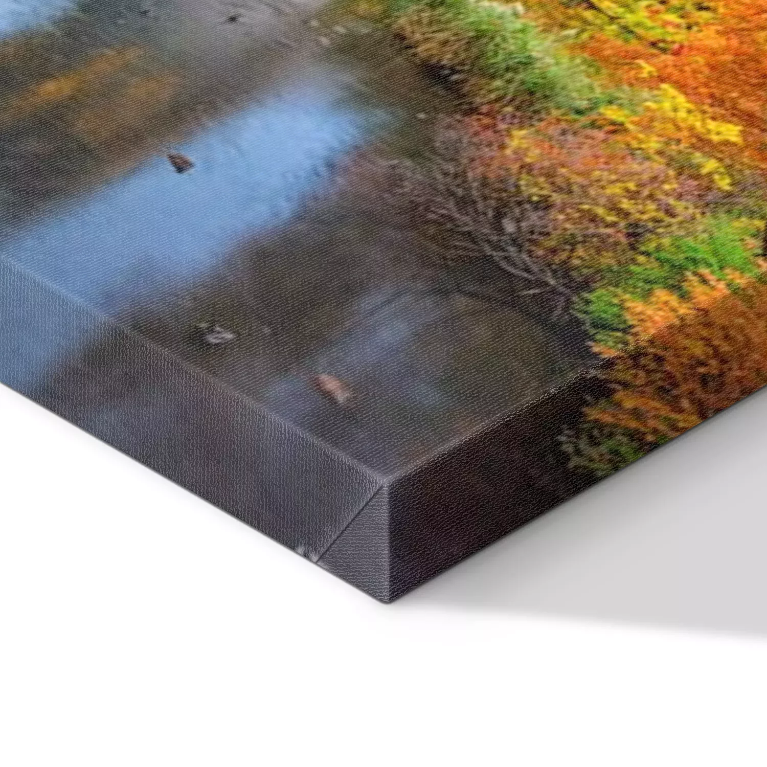 De print wordt aangebracht op hoogwaardig canvas dat op een schildersweefgetouw (spieraam) wordt gespannen. Omdat de print de zijranden bedekt, hoeft het ontwerp niet met een extra kader te worden omlijst. Wij raden ook composities aan die uit meerdere foto's bestaan en zo een coherente compositie vormen.