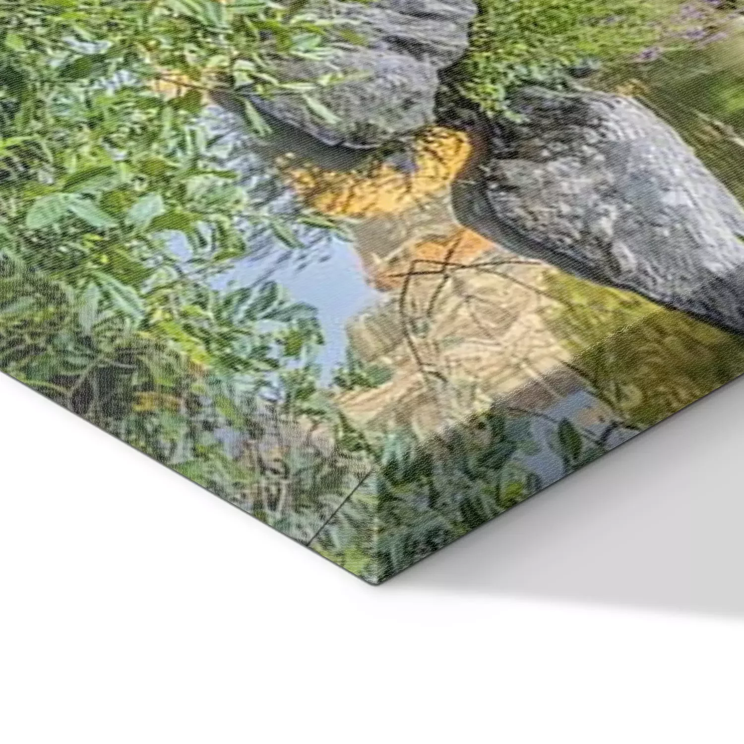 De print wordt aangebracht op hoogwaardig canvas dat op een schildersweefgetouw (spieraam) wordt gespannen. Omdat de print de zijranden bedekt, hoeft het ontwerp niet met een extra kader te worden omlijst. Wij raden ook composities aan die uit meerdere foto's bestaan en zo een coherente compositie vormen.