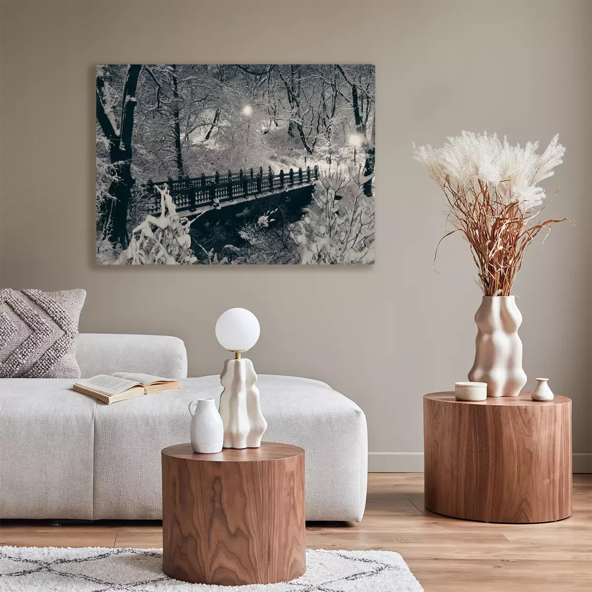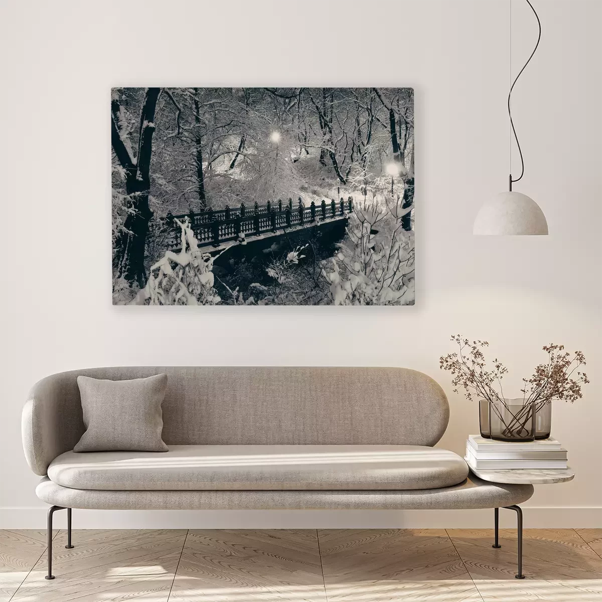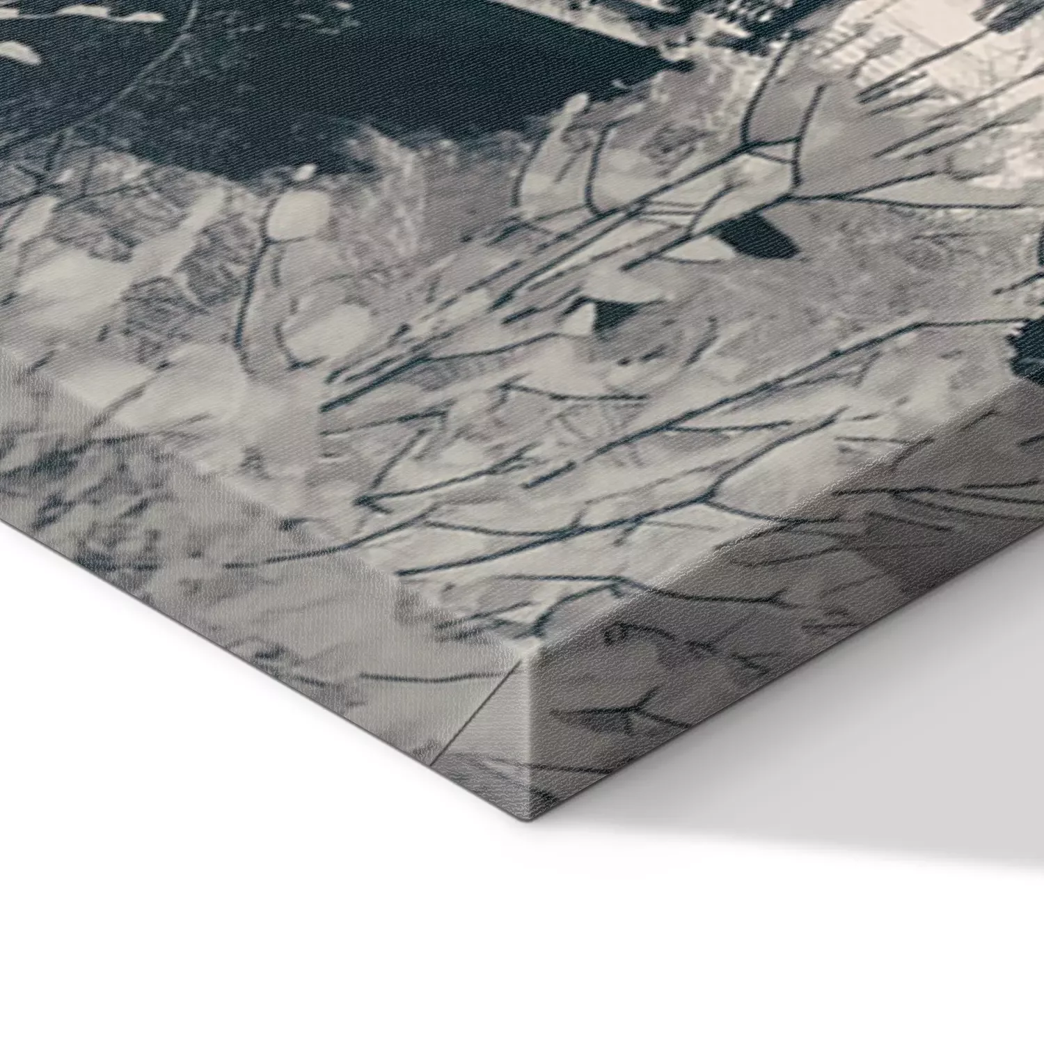 De print wordt aangebracht op hoogwaardig canvas dat op een schildersweefgetouw (spieraam) wordt gespannen. Omdat de print de zijranden bedekt, hoeft het ontwerp niet met een extra kader te worden omlijst. Wij raden ook composities aan die uit meerdere foto's bestaan en zo een coherente compositie vormen.