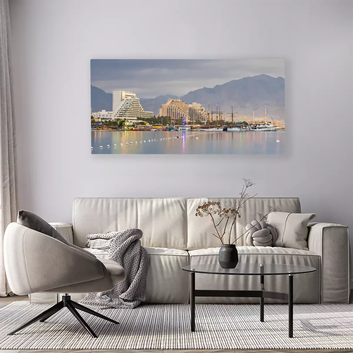 Canvas: Centrale strand van Eilat bij zonsopgang