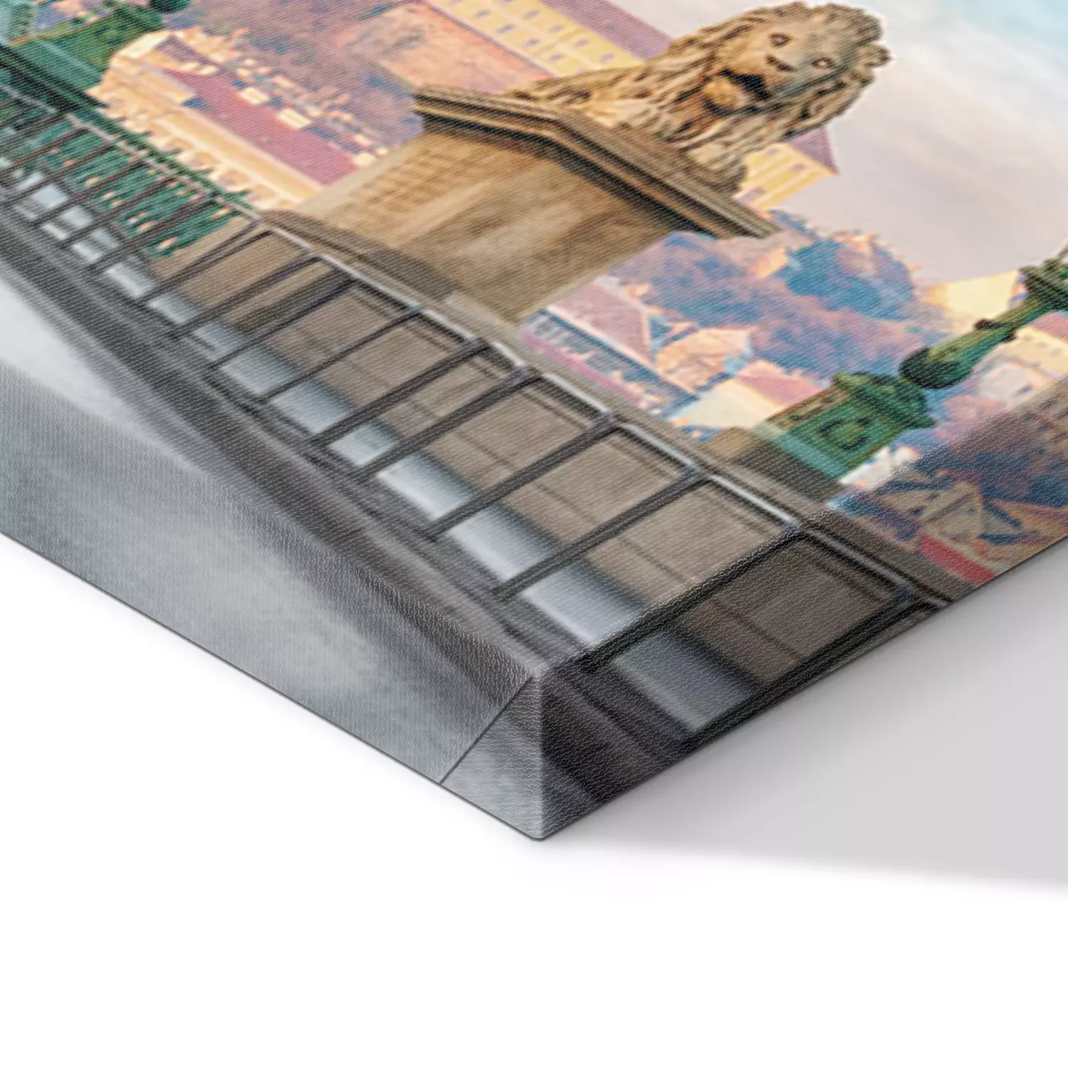 De print wordt aangebracht op hoogwaardig canvas dat op een schildersweefgetouw (spieraam) wordt gespannen. Omdat de print de zijranden bedekt, hoeft het ontwerp niet met een extra kader te worden omlijst. Wij raden ook composities aan die uit meerdere foto's bestaan en zo een coherente compositie vormen.