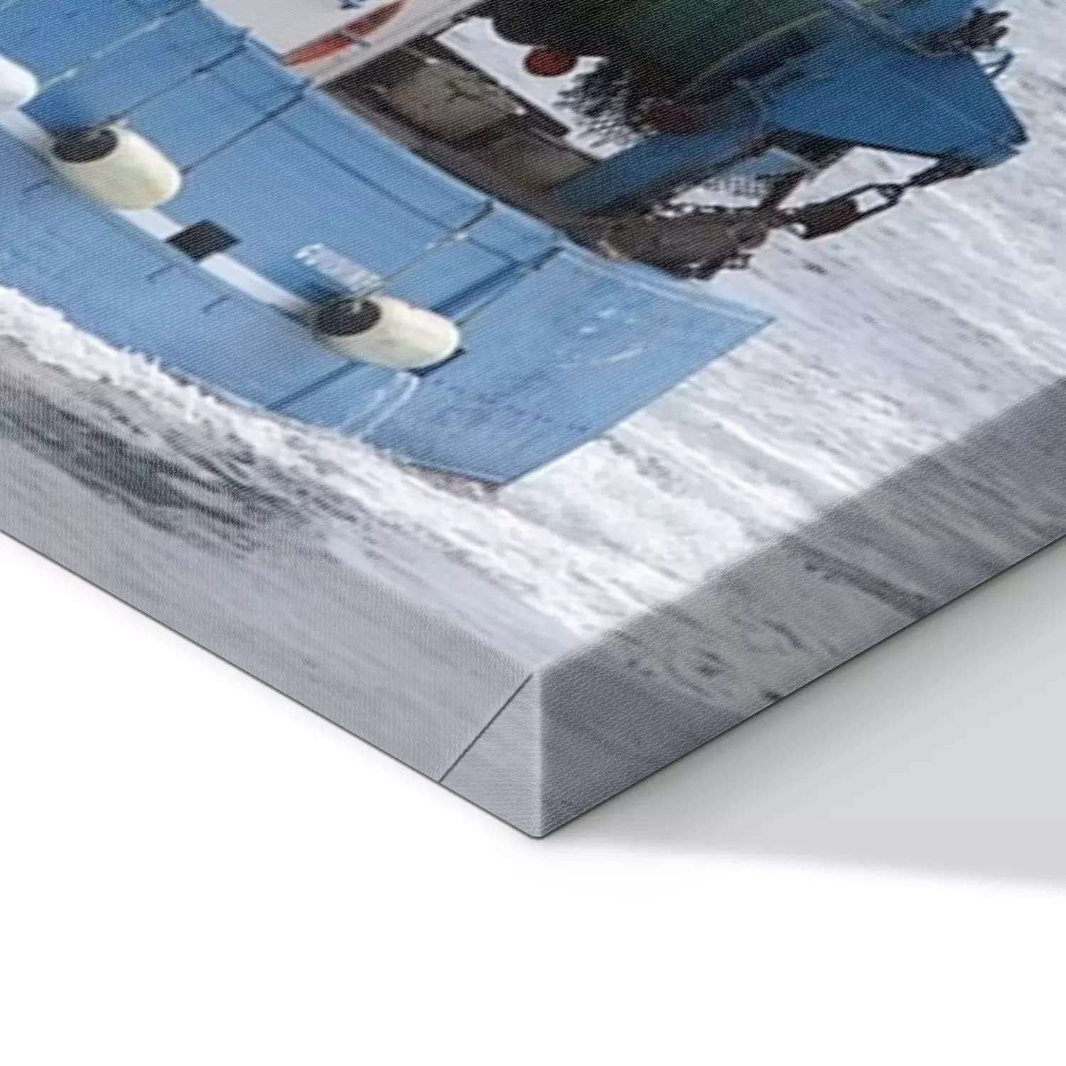 De print wordt aangebracht op hoogwaardig canvas dat op een schildersweefgetouw (spieraam) wordt gespannen. Omdat de print de zijranden bedekt, hoeft het ontwerp niet met een extra kader te worden omlijst. Wij raden ook composities aan die uit meerdere foto's bestaan en zo een coherente compositie vormen.