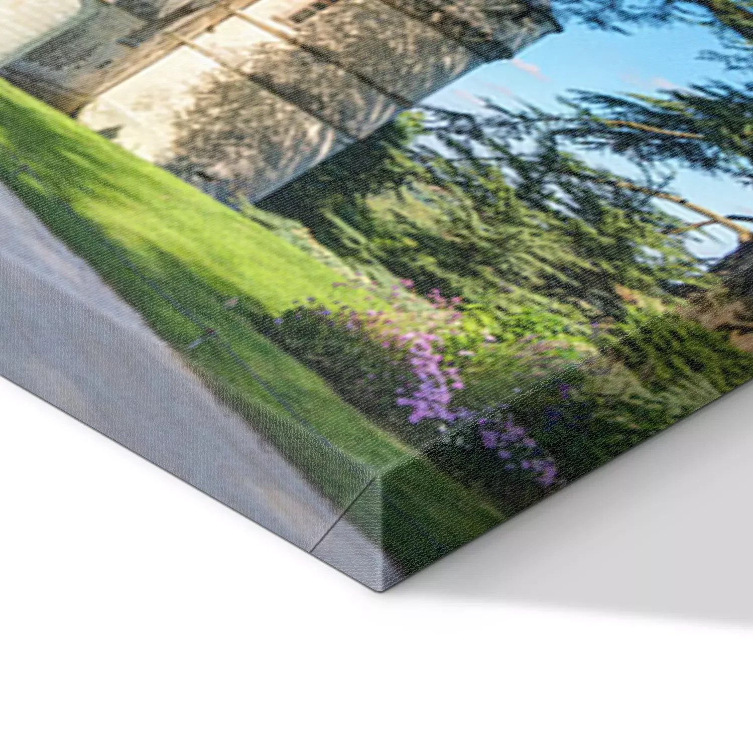 De print wordt aangebracht op hoogwaardig canvas dat op een schildersweefgetouw (spieraam) wordt gespannen. Omdat de print de zijranden bedekt, hoeft het ontwerp niet met een extra kader te worden omlijst. Wij raden ook composities aan die uit meerdere foto's bestaan en zo een coherente compositie vormen.