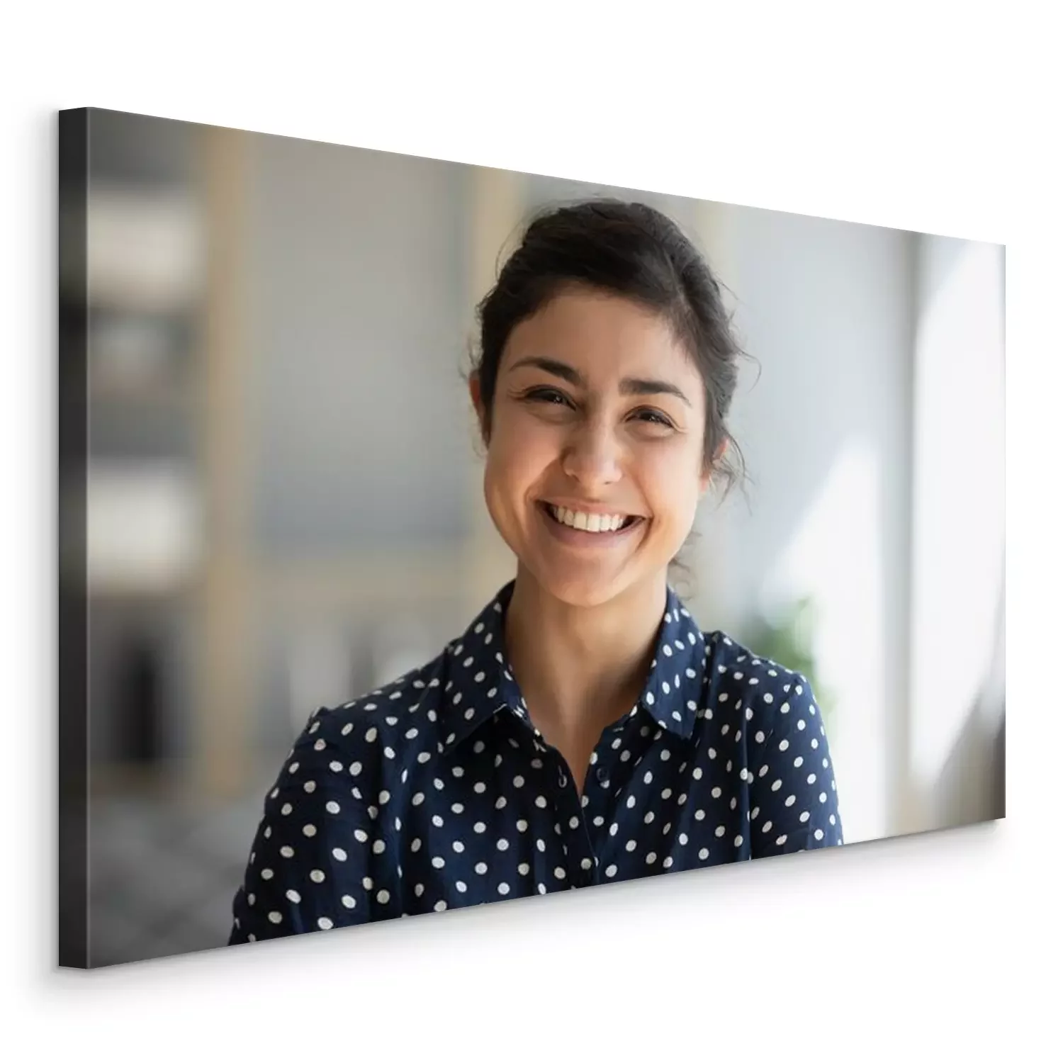 Canvas: Cheerful indian girl standing at home office looking at camera