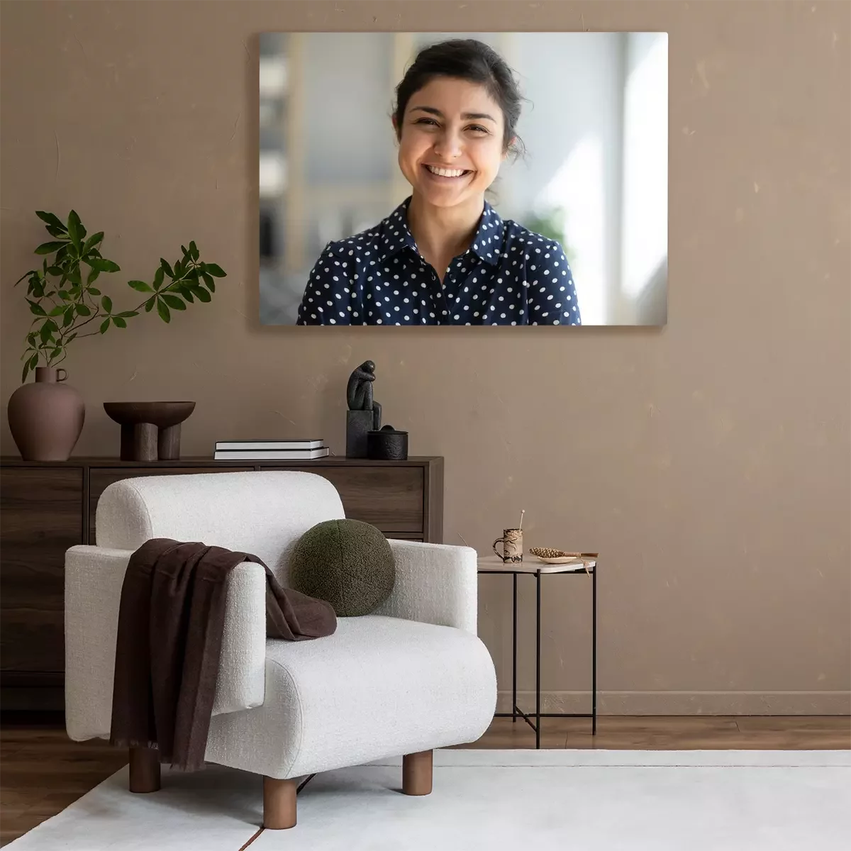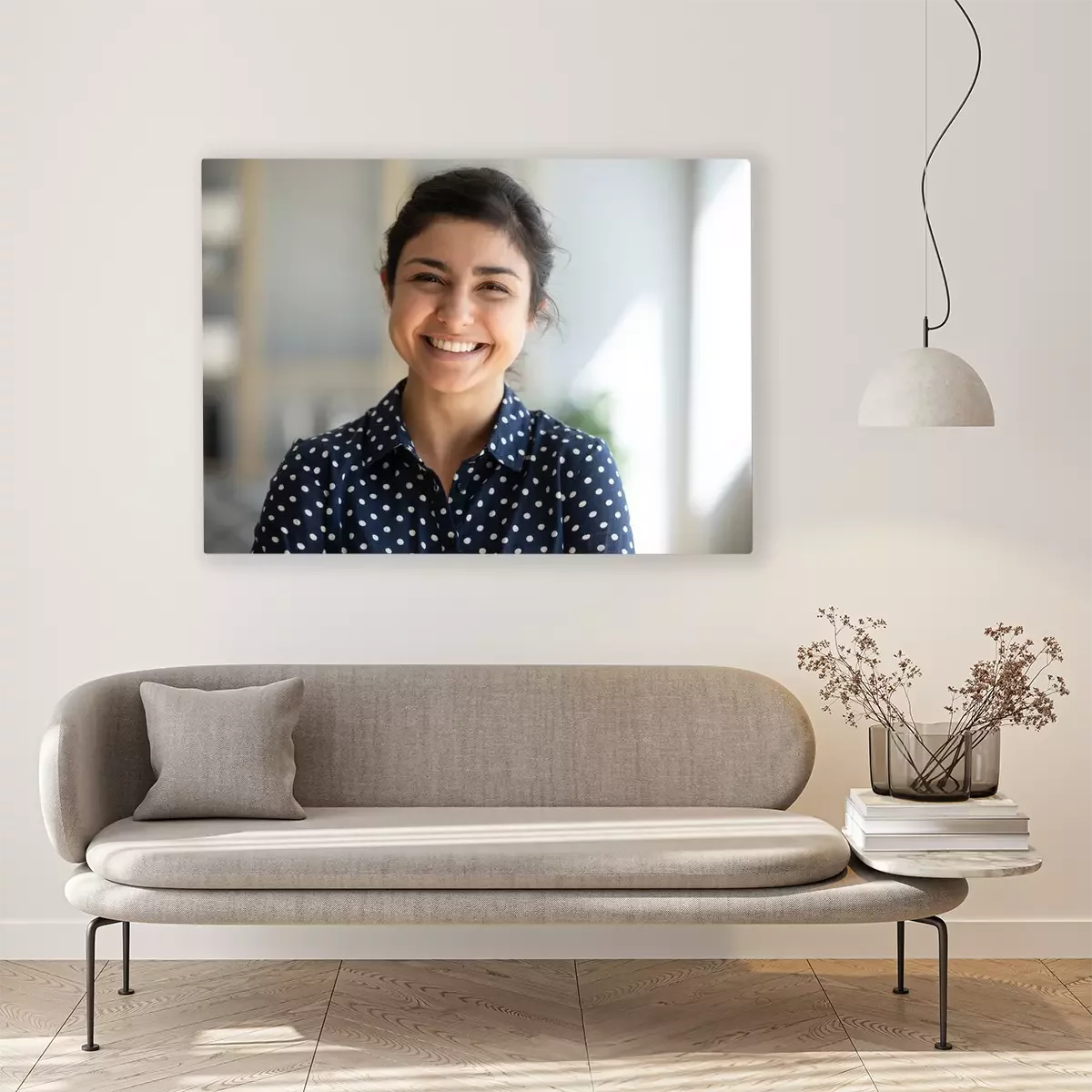 De print wordt aangebracht op hoogwaardig canvas dat op een schildersweefgetouw (spieraam) wordt gespannen. Omdat de print de zijranden bedekt, hoeft het ontwerp niet met een extra kader te worden omlijst. Wij raden ook composities aan die uit meerdere foto's bestaan en zo een coherente compositie vormen.