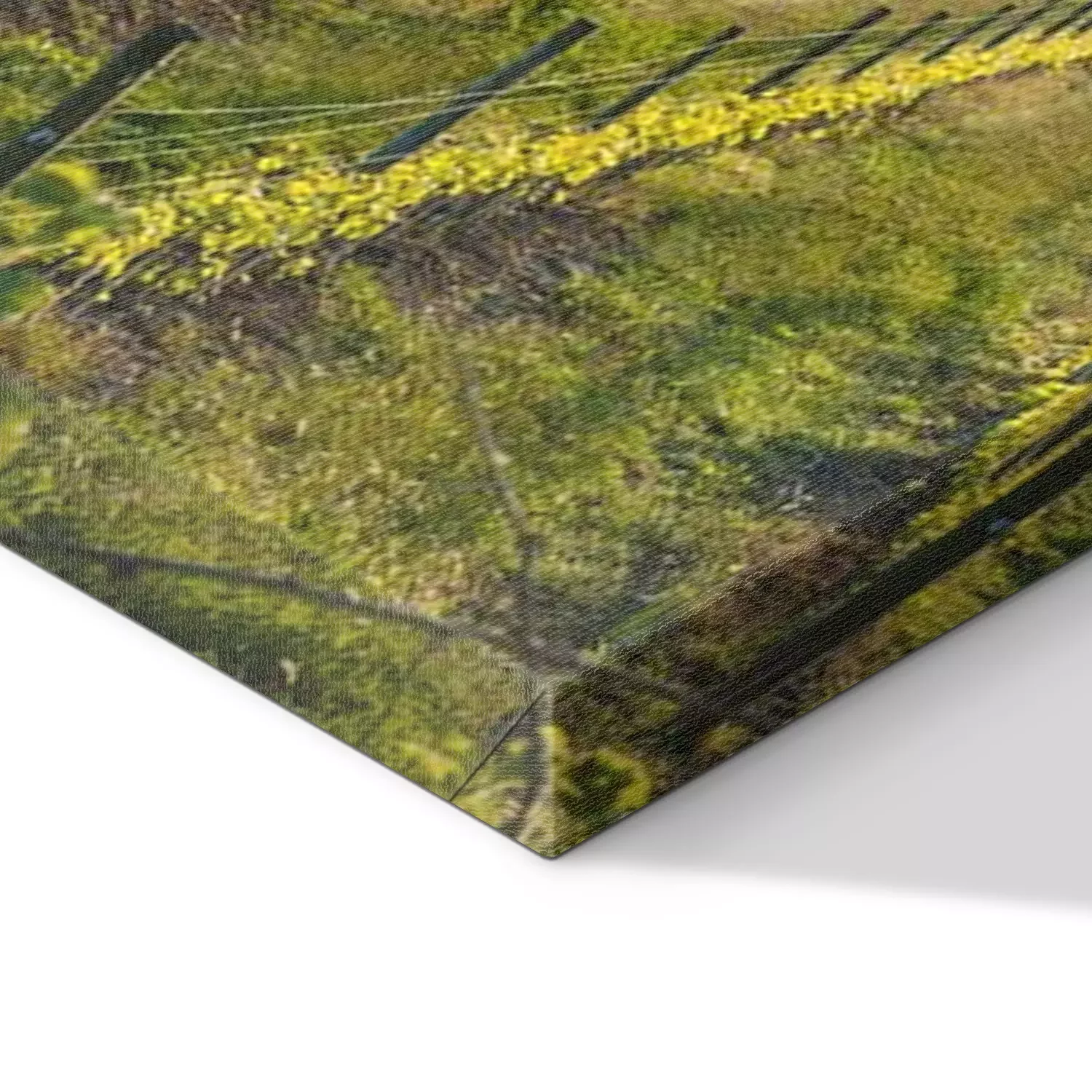 De print wordt aangebracht op hoogwaardig canvas dat op een schildersweefgetouw (spieraam) wordt gespannen. Omdat de print de zijranden bedekt, hoeft het ontwerp niet met een extra kader te worden omlijst. Wij raden ook composities aan die uit meerdere foto's bestaan en zo een coherente compositie vormen.